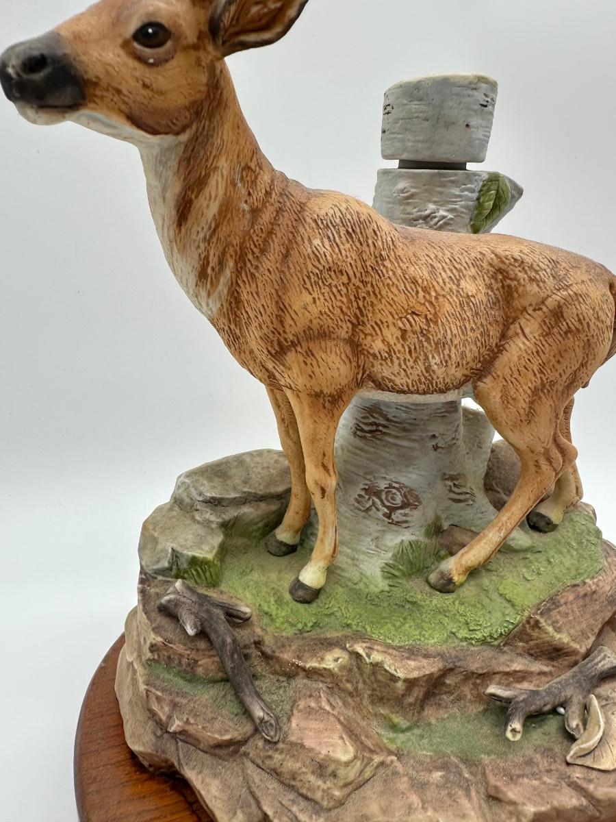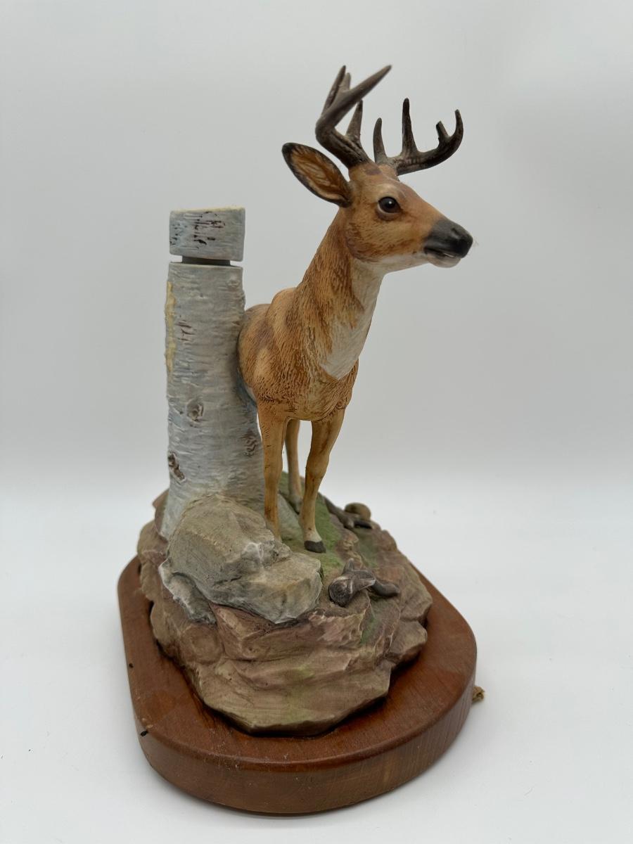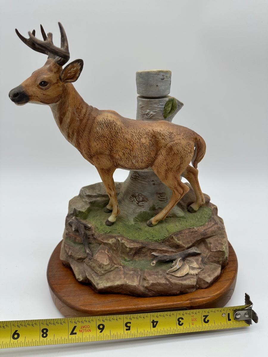 Vintage Whitetail Buck Whiskey Decanter – “The Buck” Deer Decanter on Wood Base (Empty)