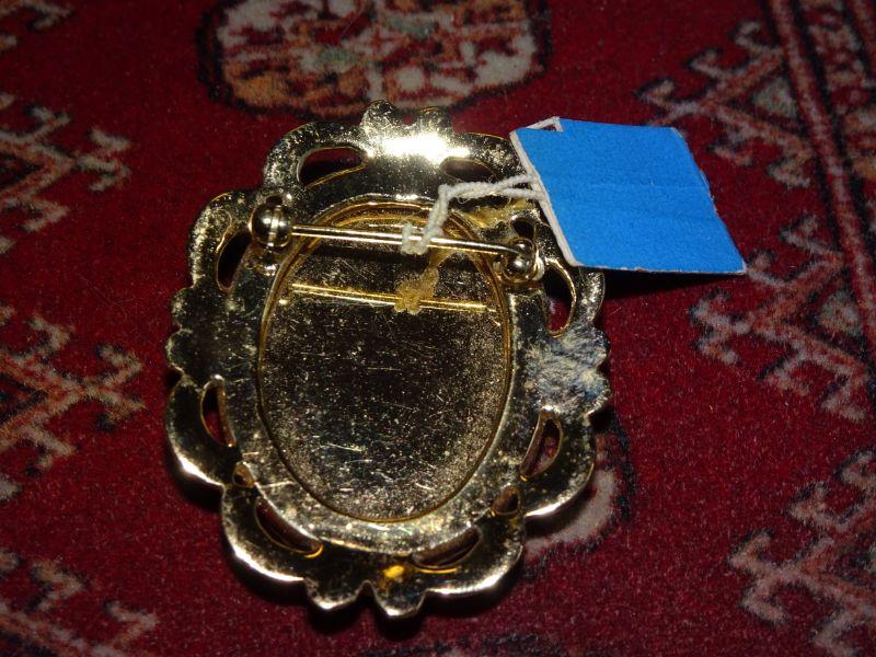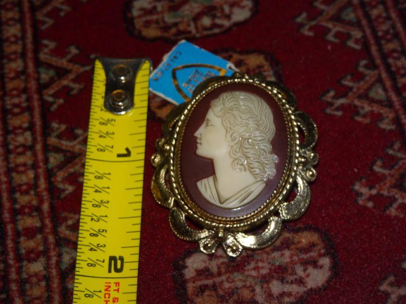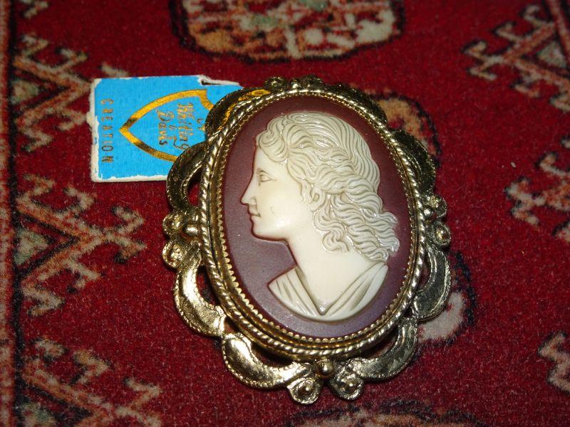 Vintage Whiting and Davis Company Gold Tone Cameo / Original Tag