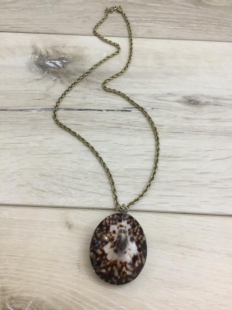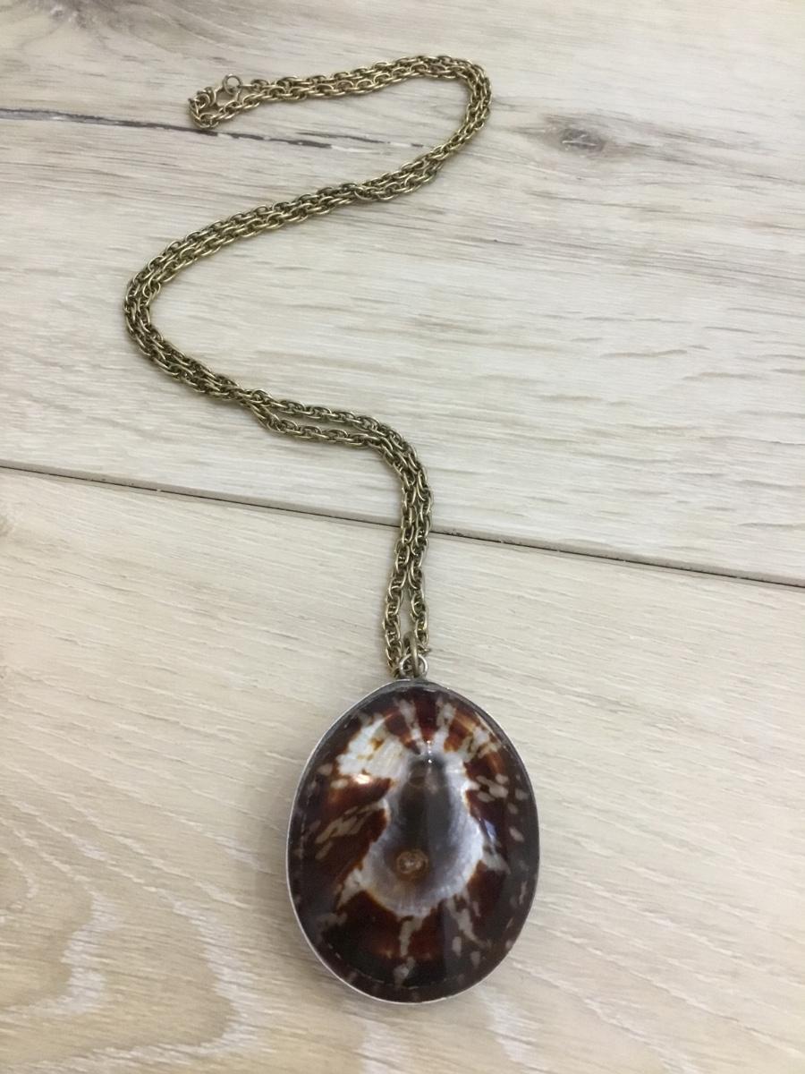 Vintage whole oyster, shell, pendant, antique, gold tone, chain necklace
