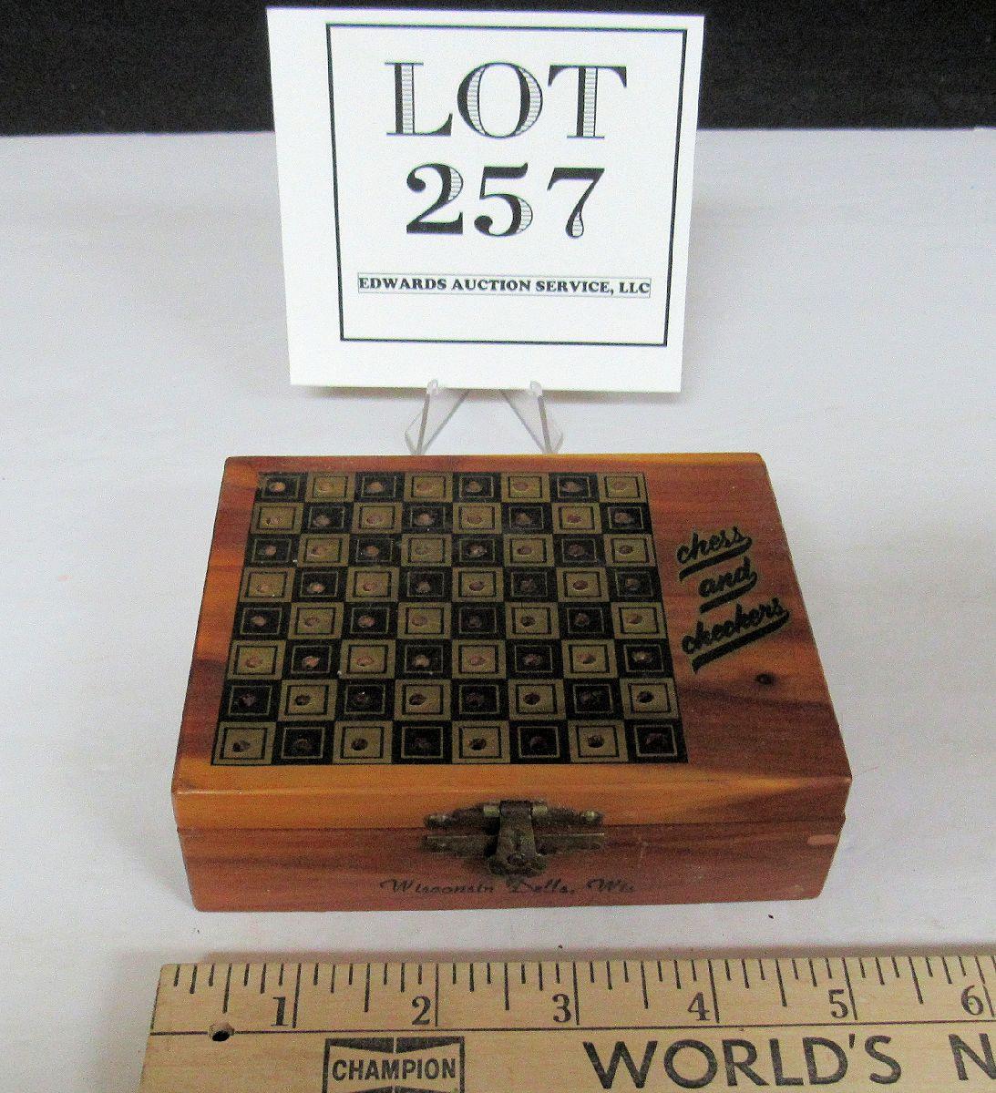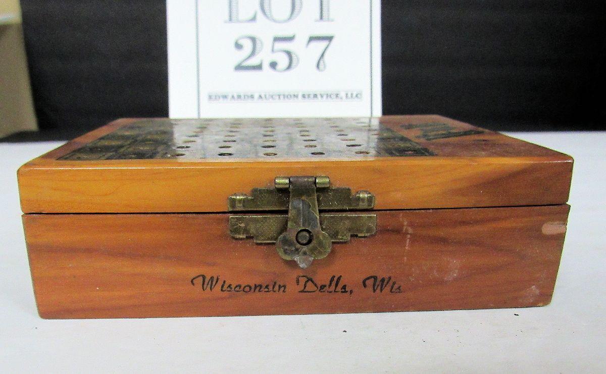 Vintage WI Dells Wood Souvenir Box With Chess/Checkers