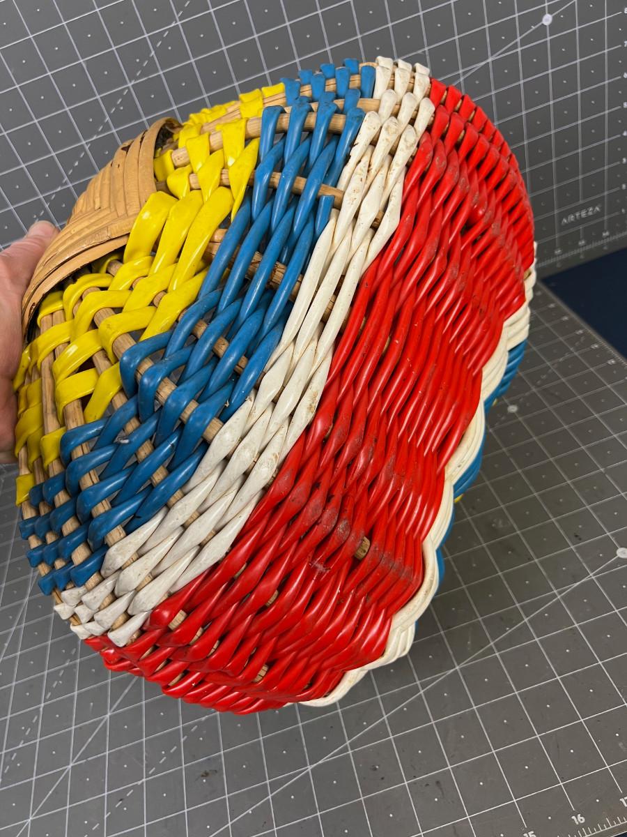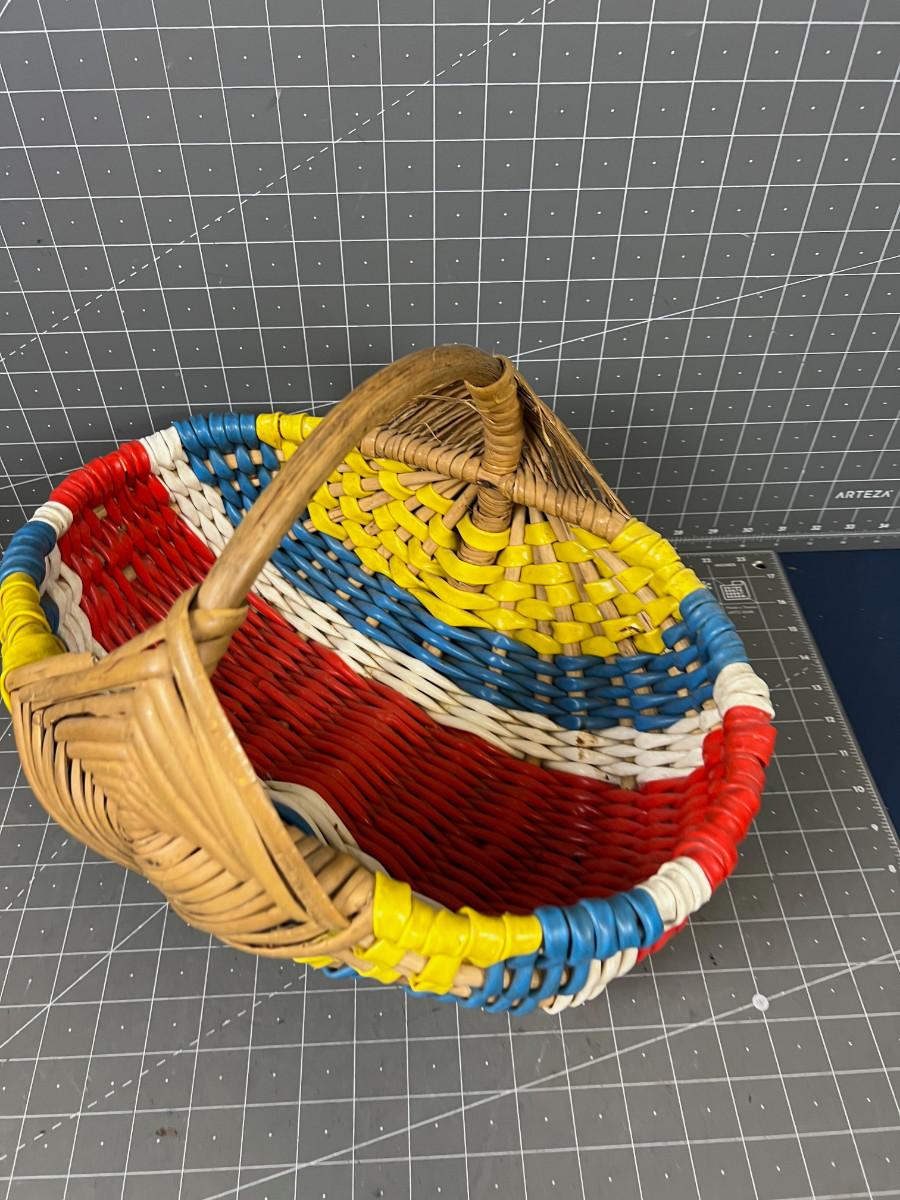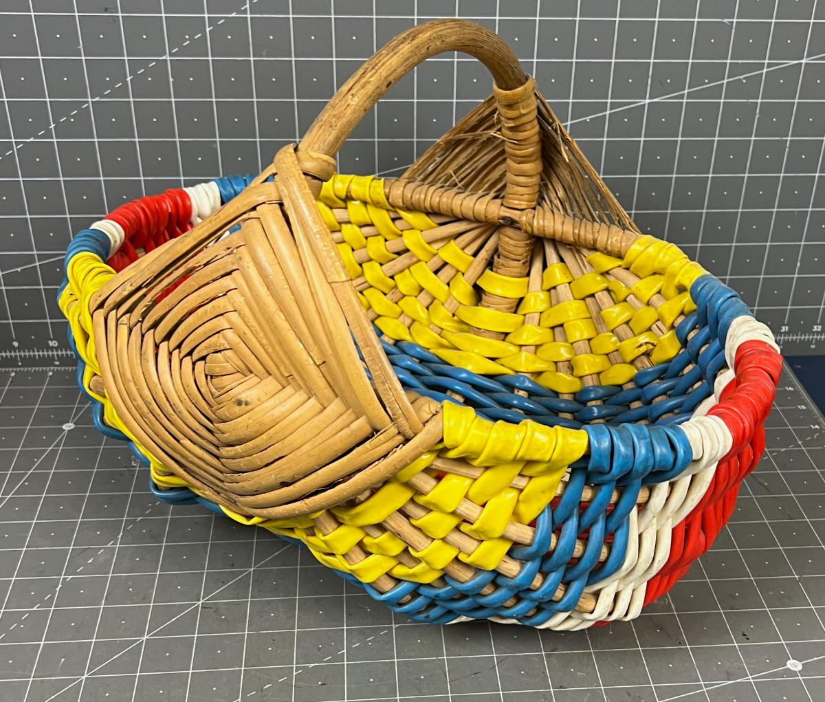 Vintage Wicker and Vinal Red Blue Yellow