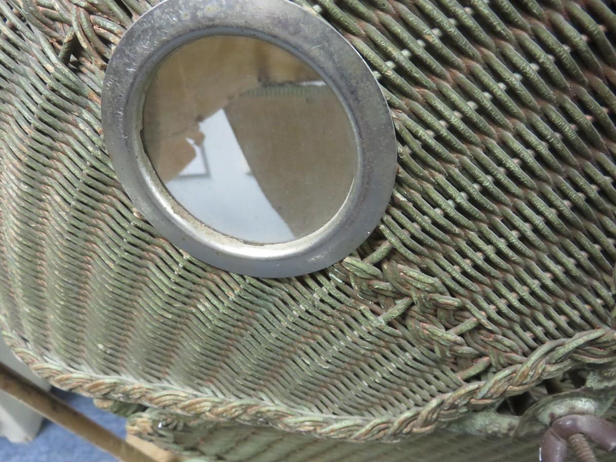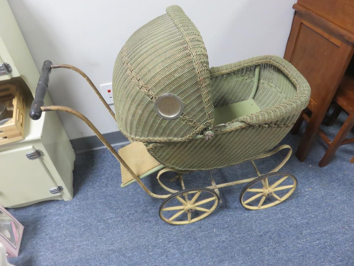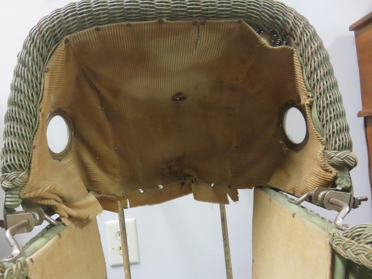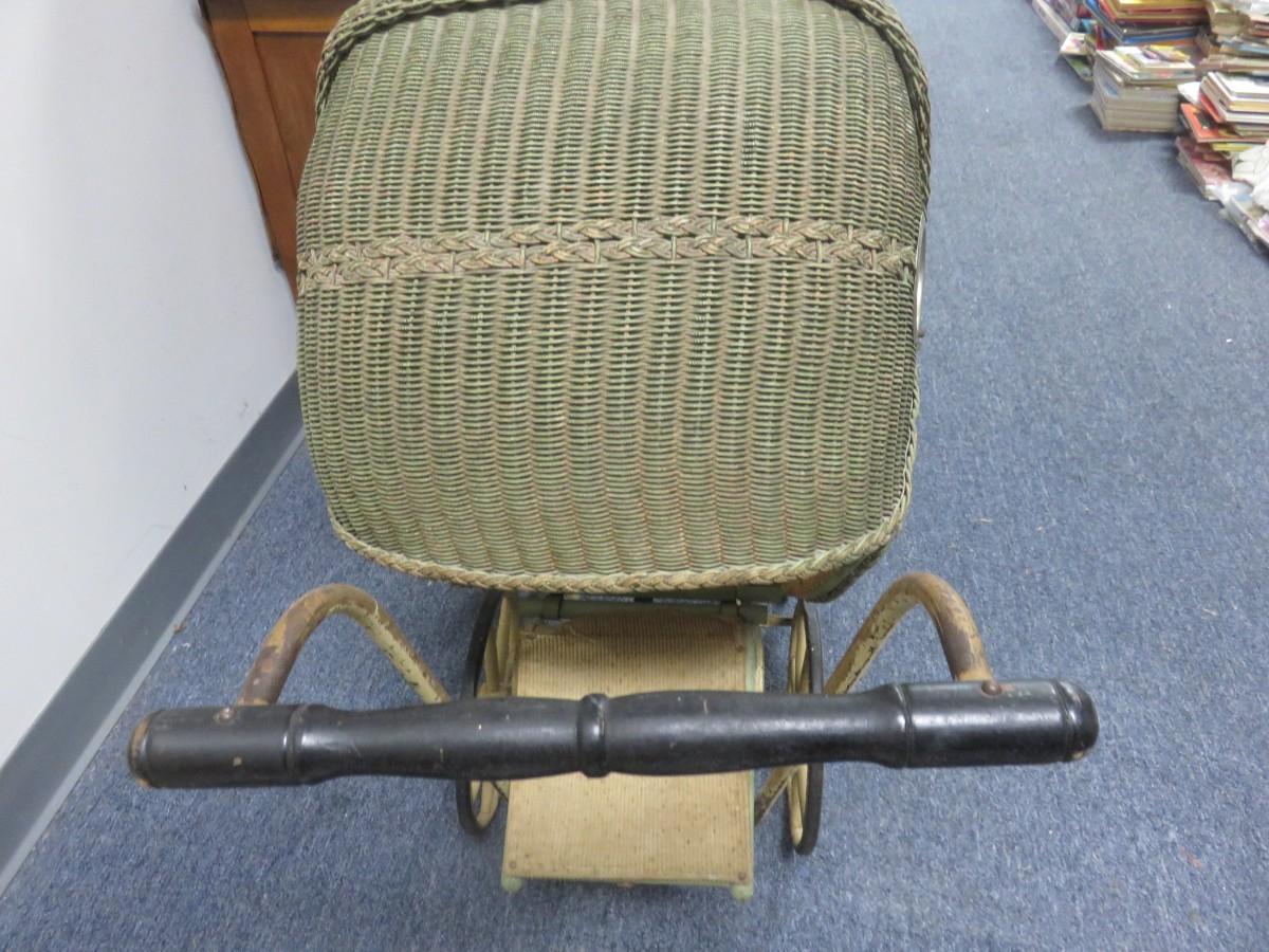 Vintage Wicker Baby Stroller with Round Glass Side Window - Wicker part measures 22 x 16 inches