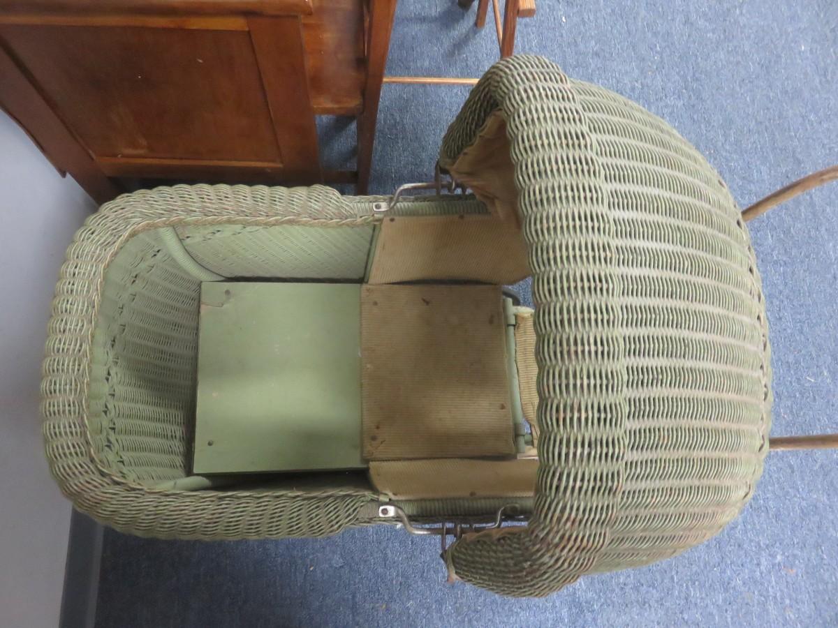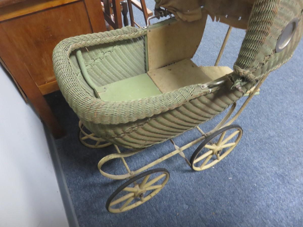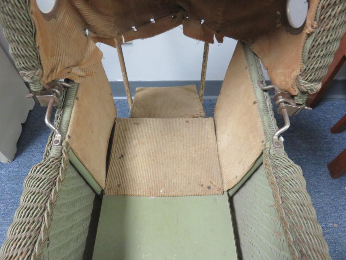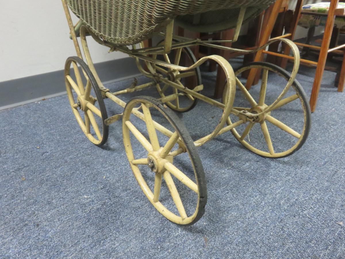 Vintage Wicker Baby Stroller with Round Glass Side Window - Wicker part measures 22 x 16 inches