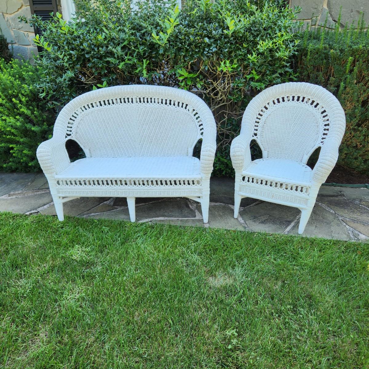 Vintage Wicker Chair and Loveseat