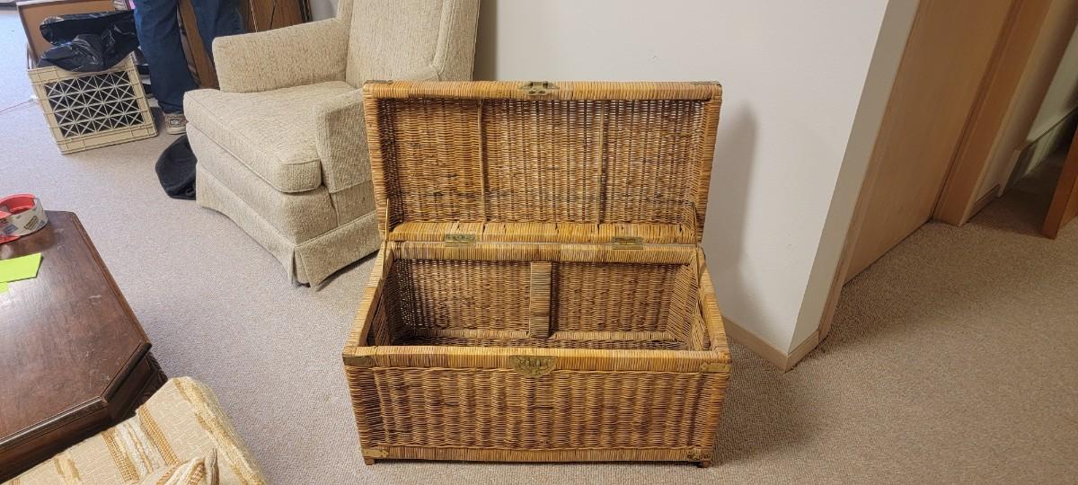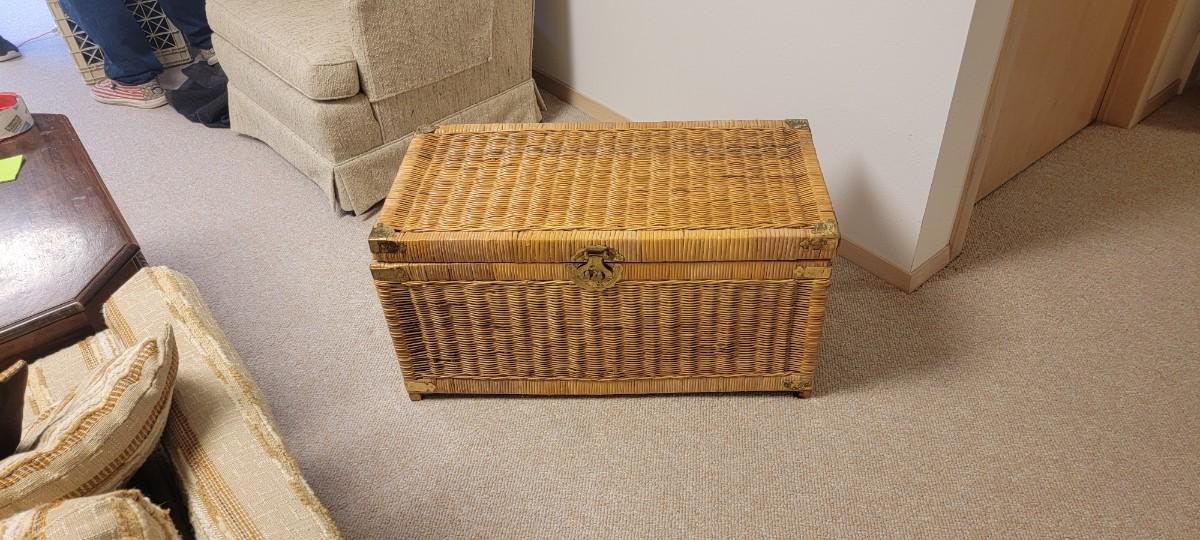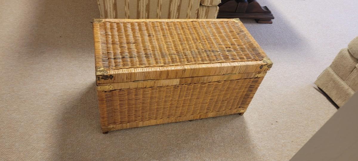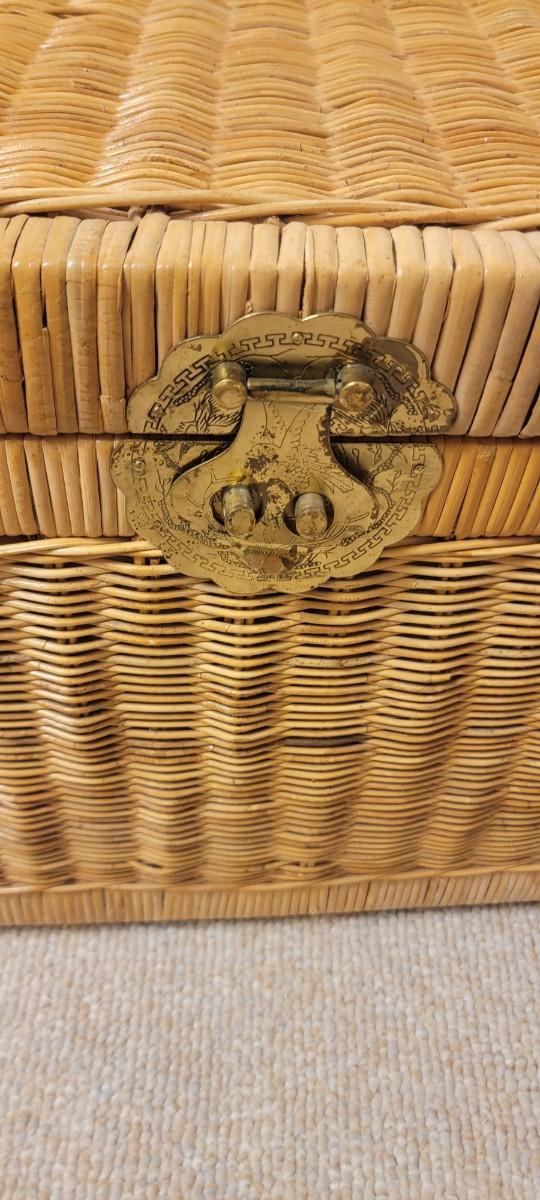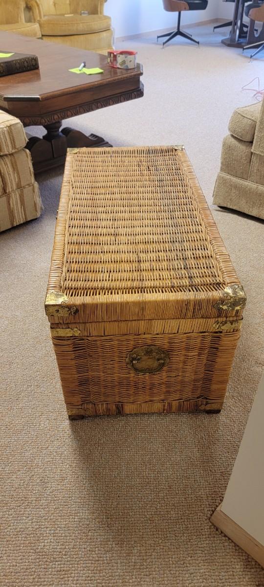 Vintage wicker storage chest. Brass color closure. 32" x 16" x 16"