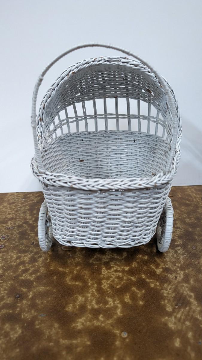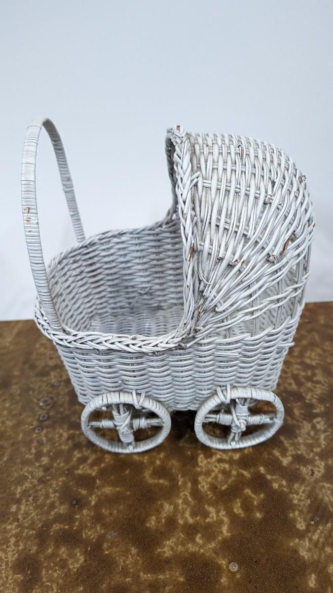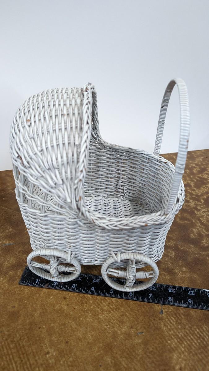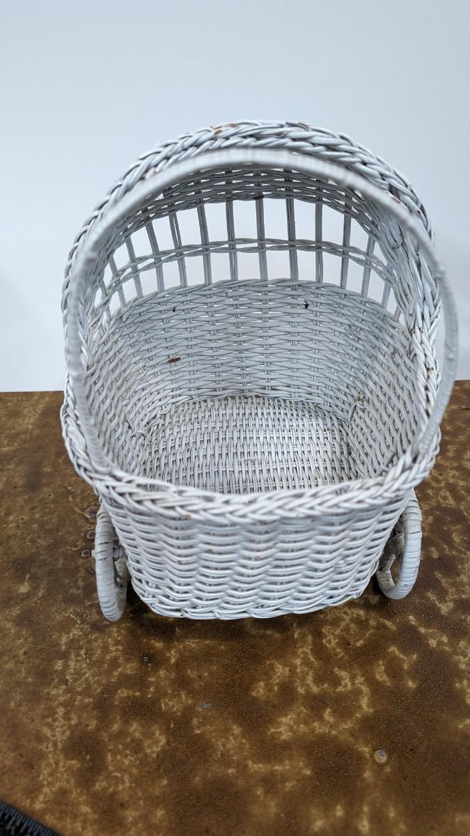 This is a nice Vintage Wicker Doll Buggy White Baby Basket Stroller Decor