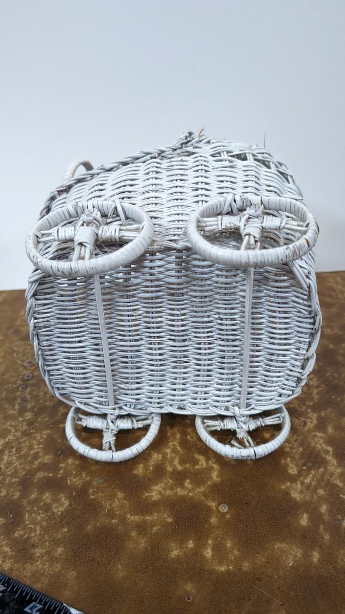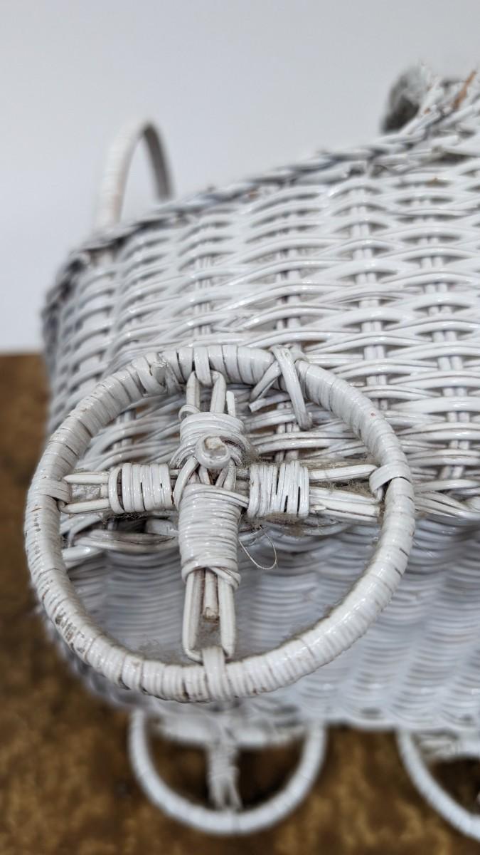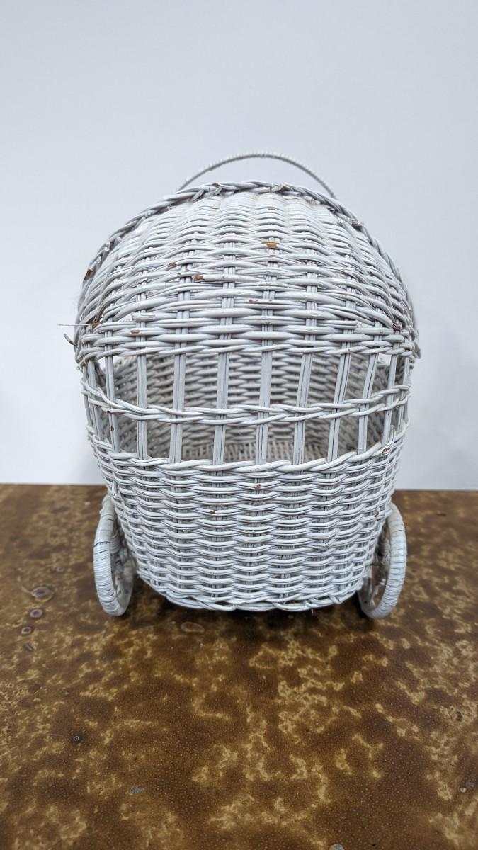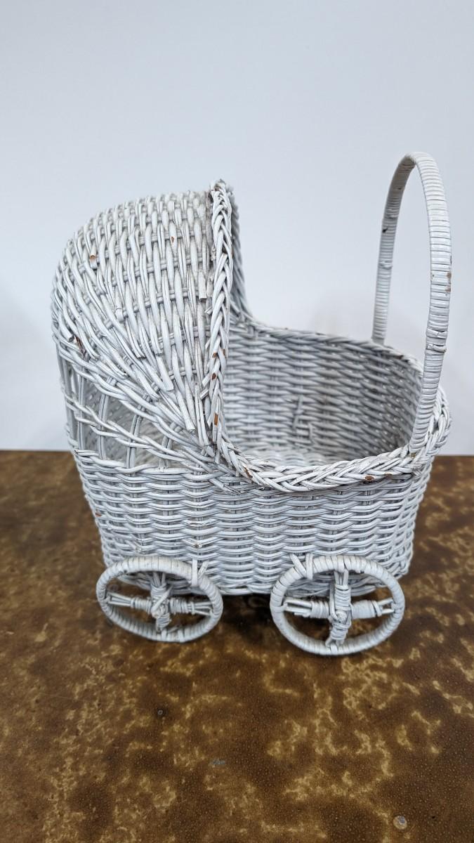 This is a nice Vintage Wicker Doll Buggy White Baby Basket Stroller Decor