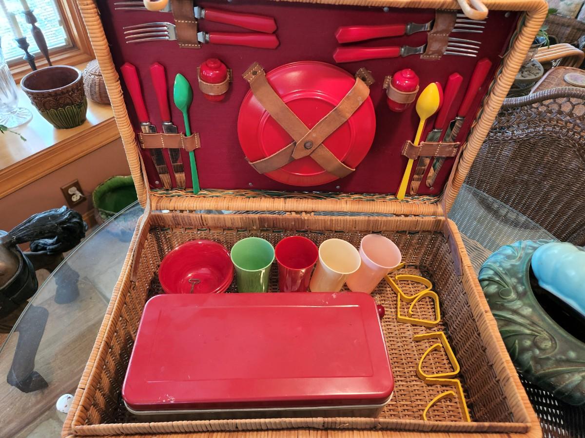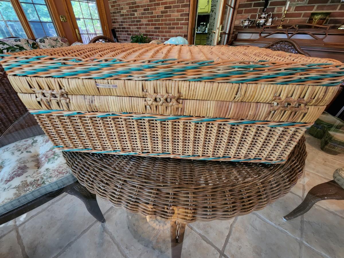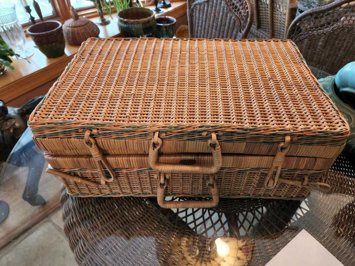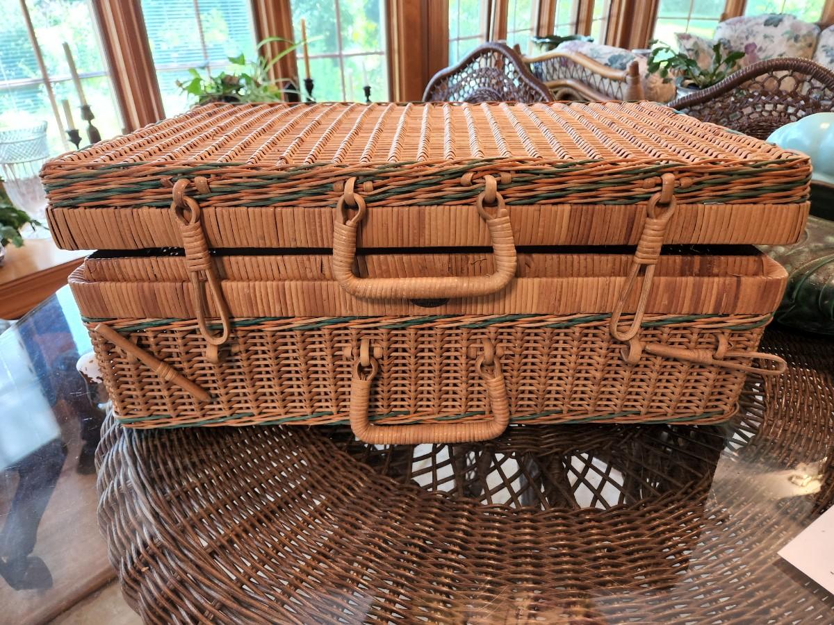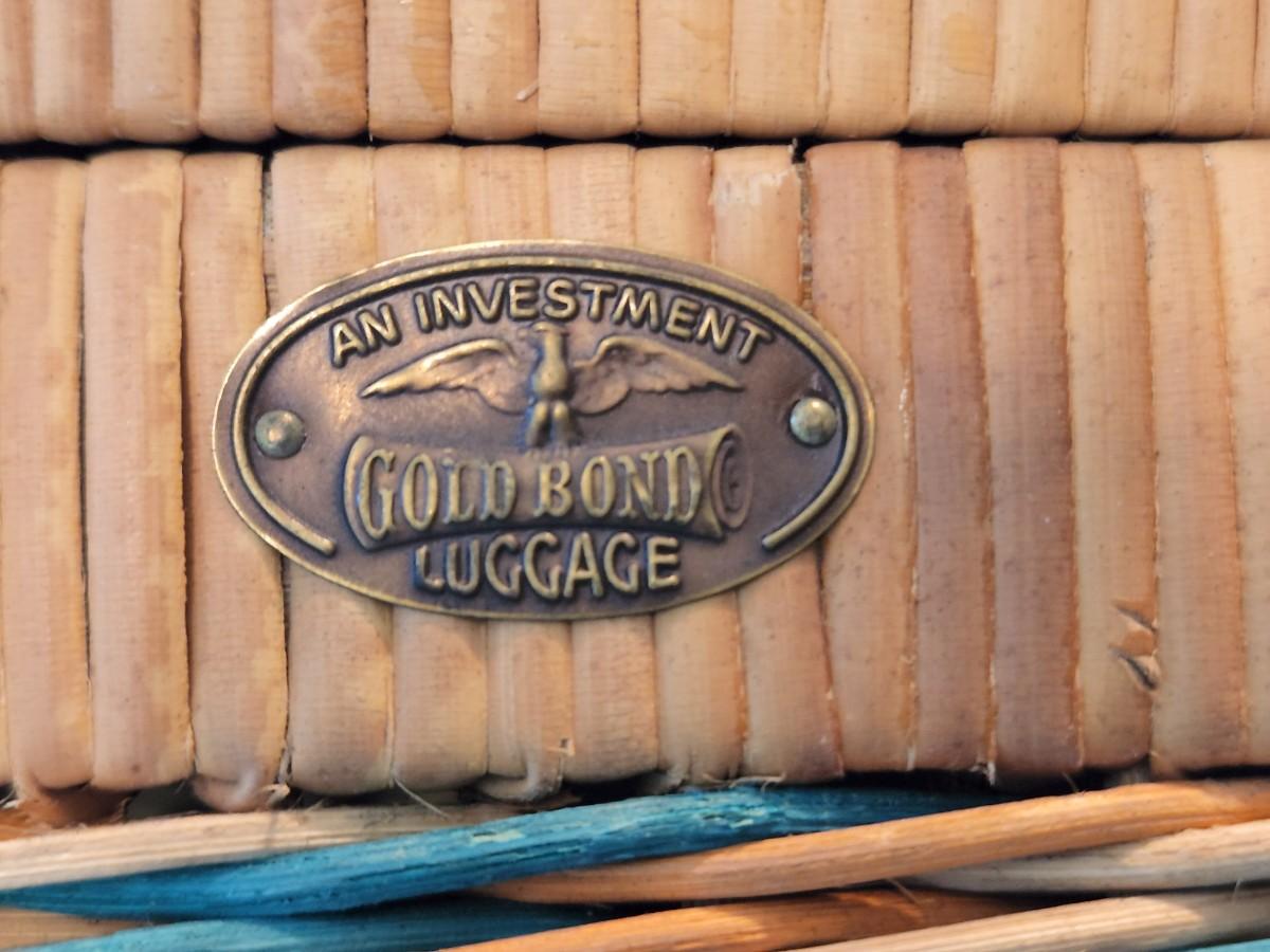 Vintage Wicker Rattan Gold Bond Luggage Picnic Basket