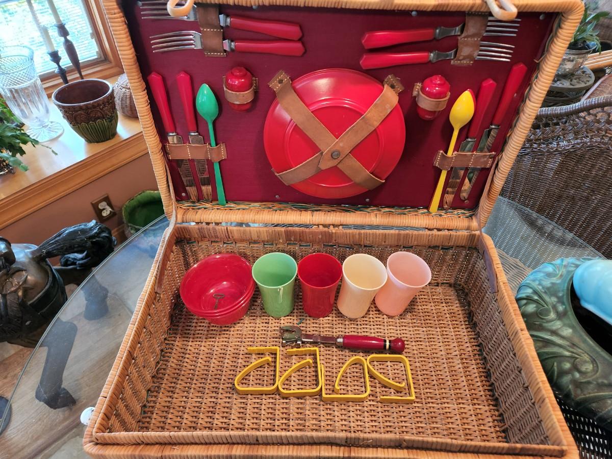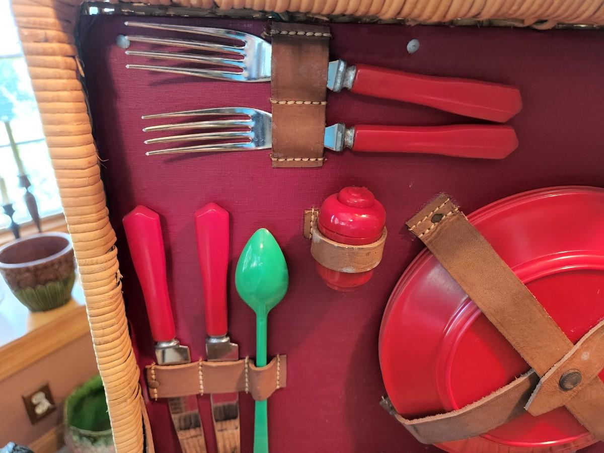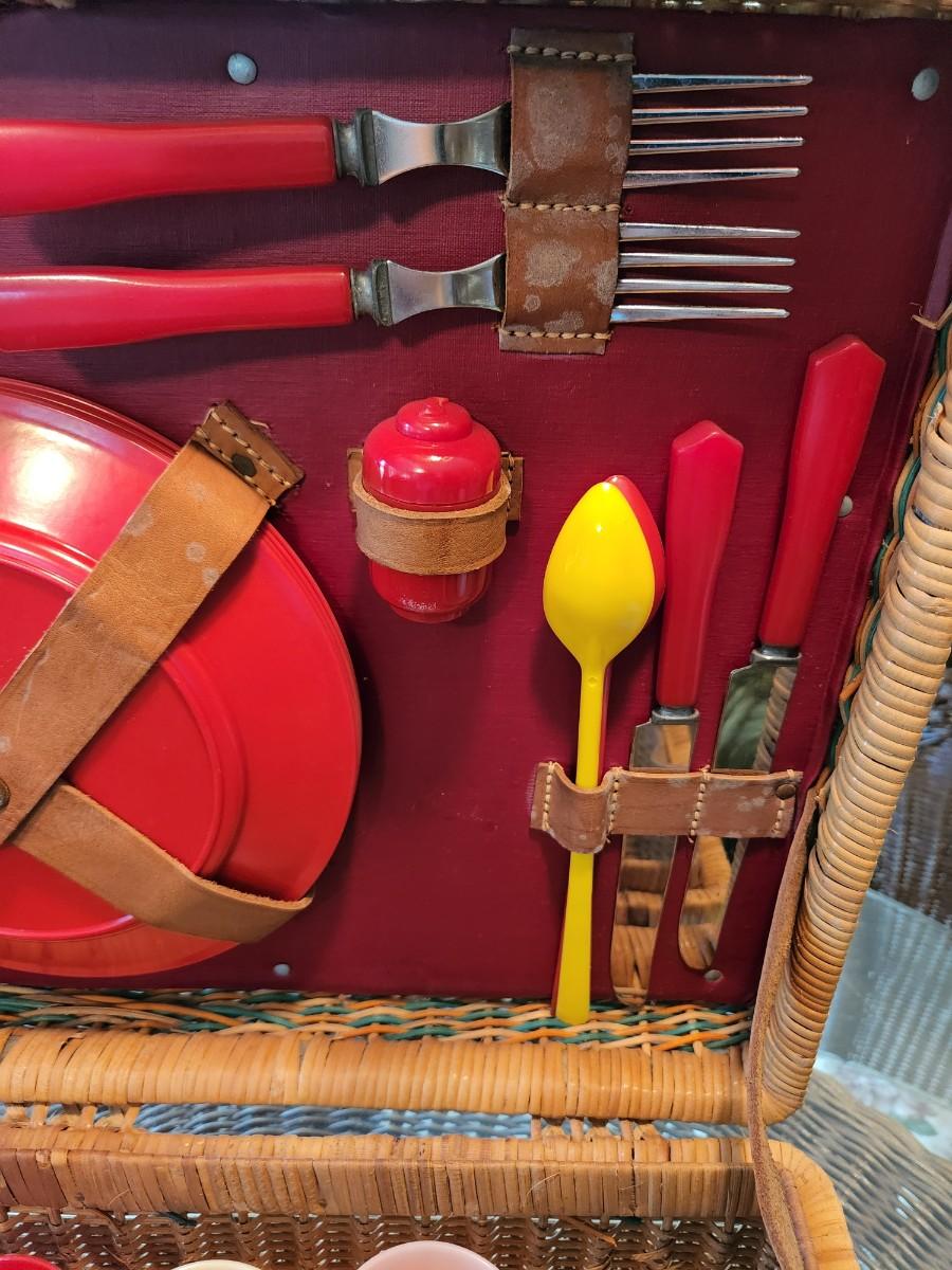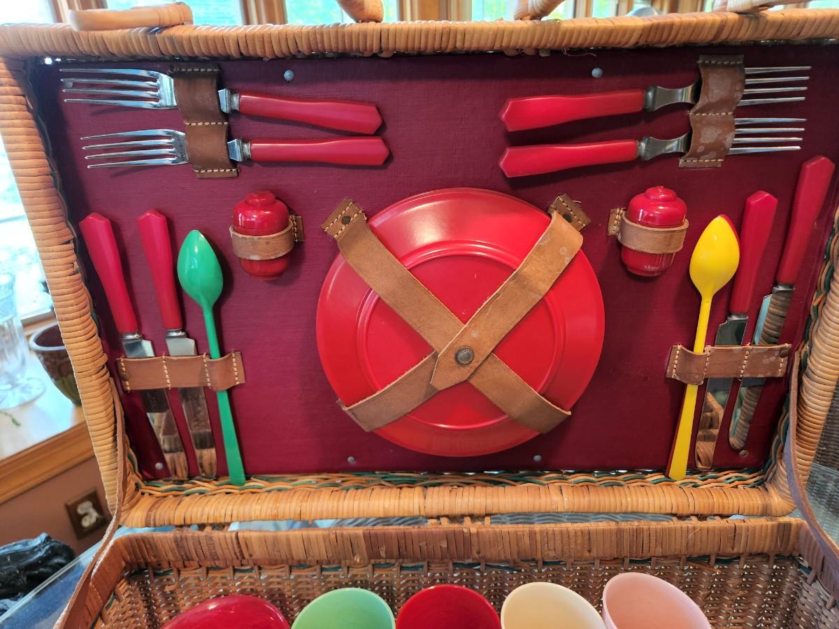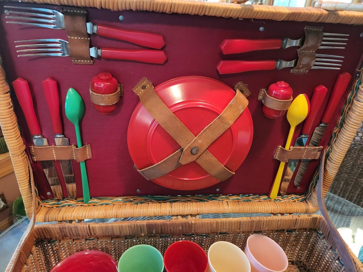 Vintage Wicker Rattan Gold Bond Luggage Picnic Basket