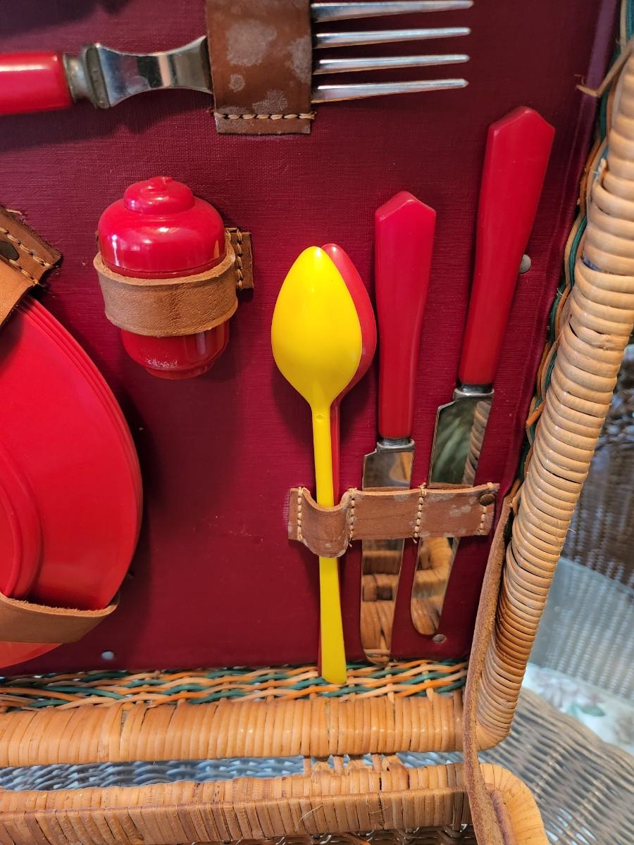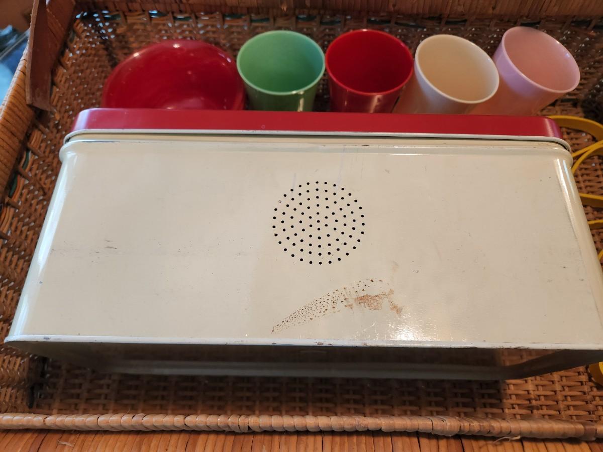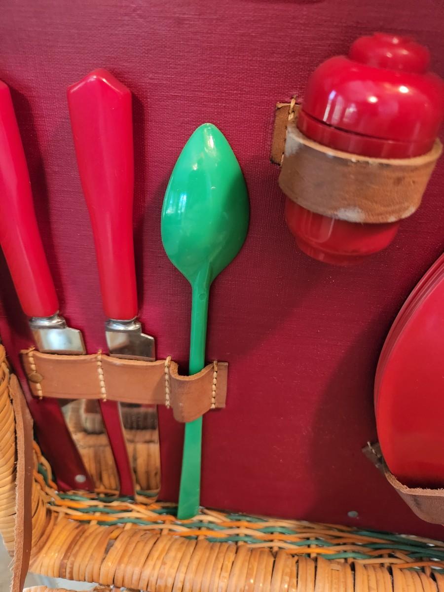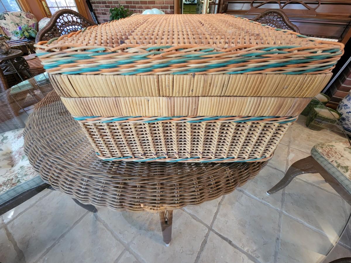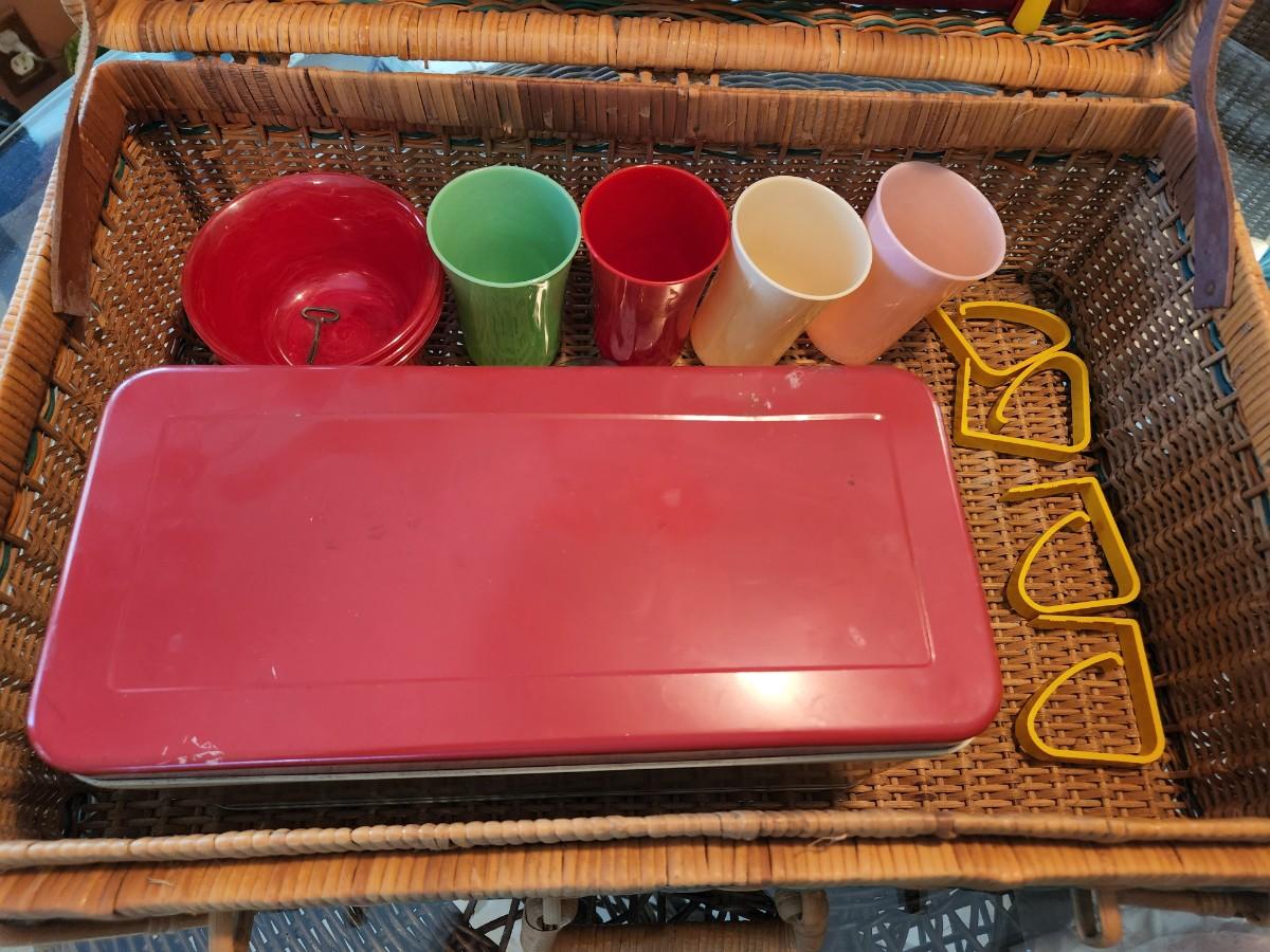 Vintage Wicker Rattan Gold Bond Luggage Picnic Basket