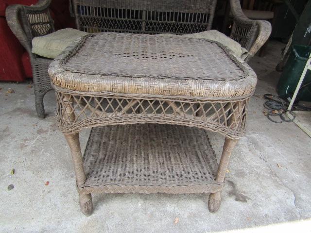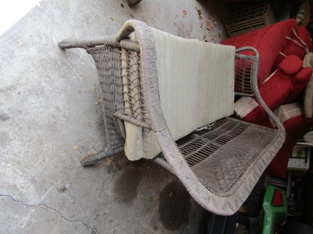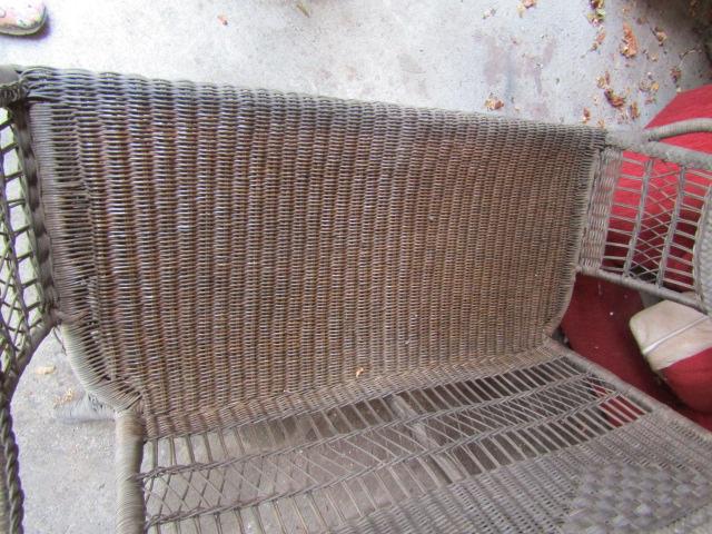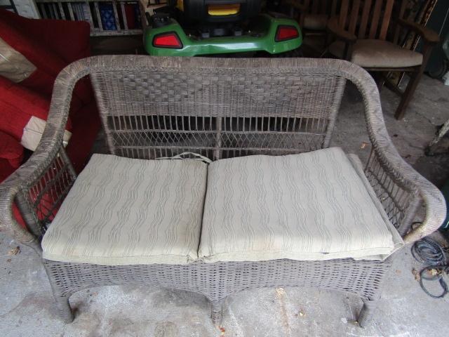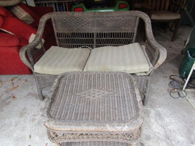 Vintage Wicker Rattan Patio Loveseat with Matching Side Table