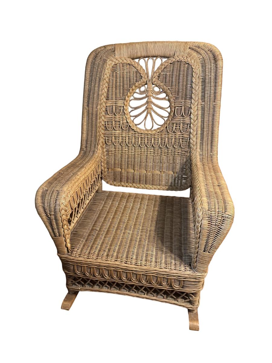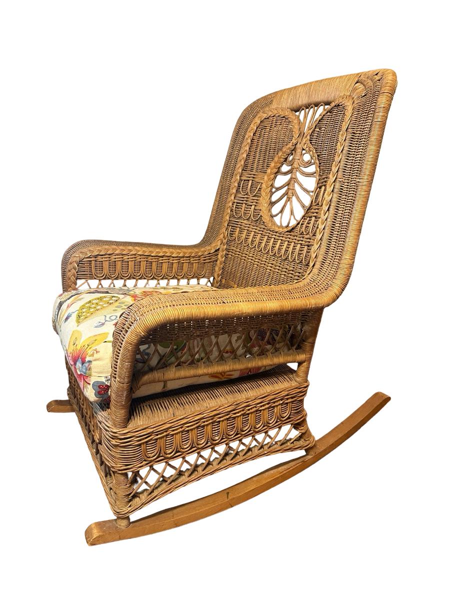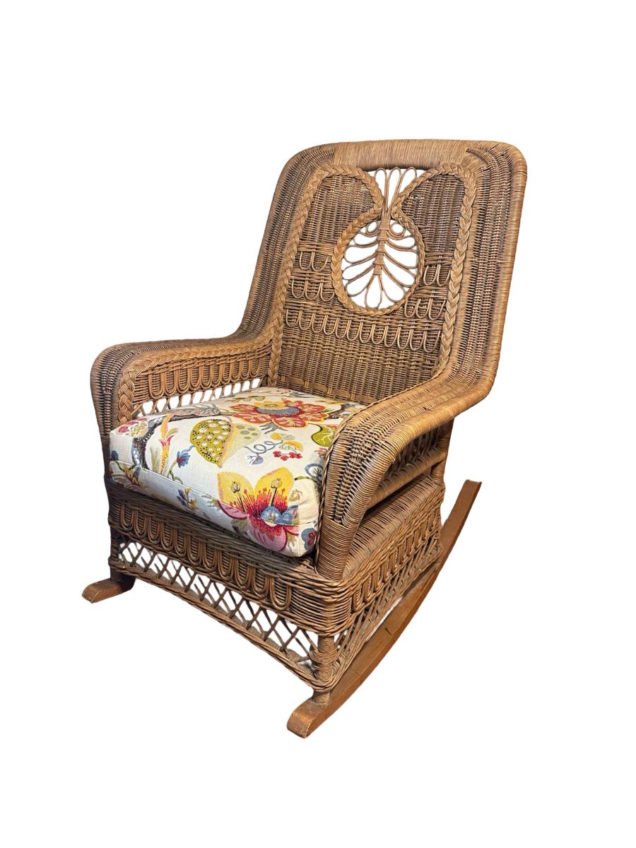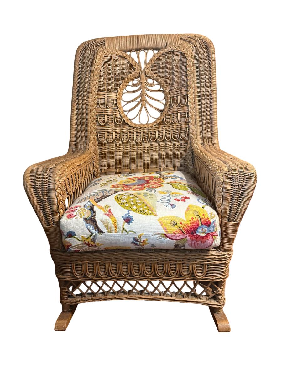 Wicker Rocking Chair with Cushioned Seat