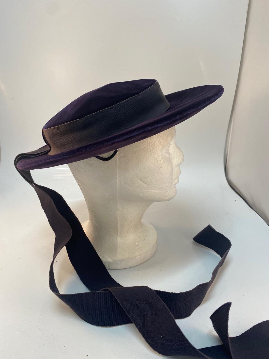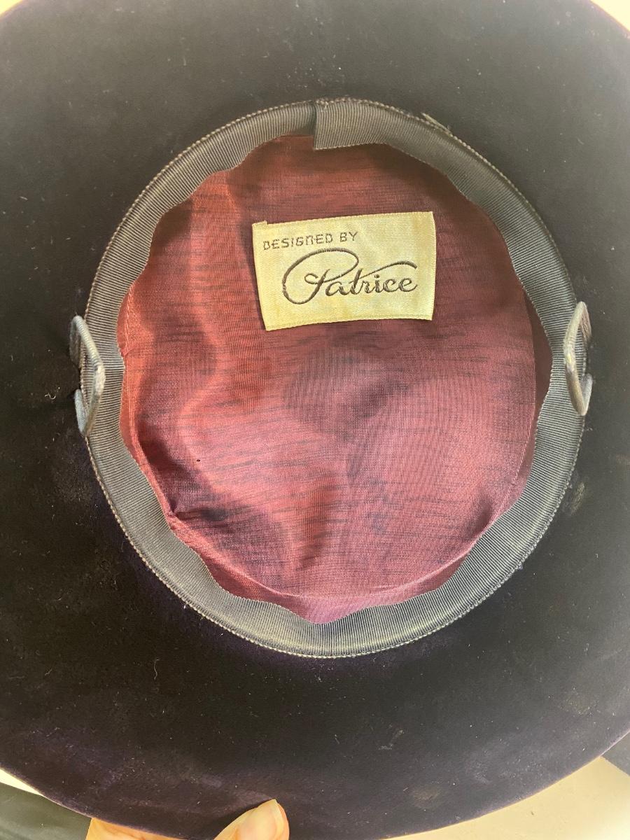 Vintage Wide Brim Platter Hat with Long Ribbon Tail. In good vintage condition. Tag inside says "Designed by Patrice".