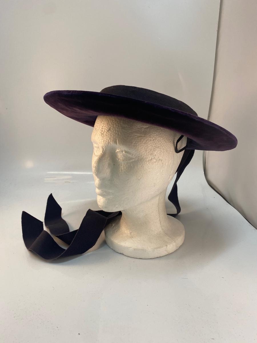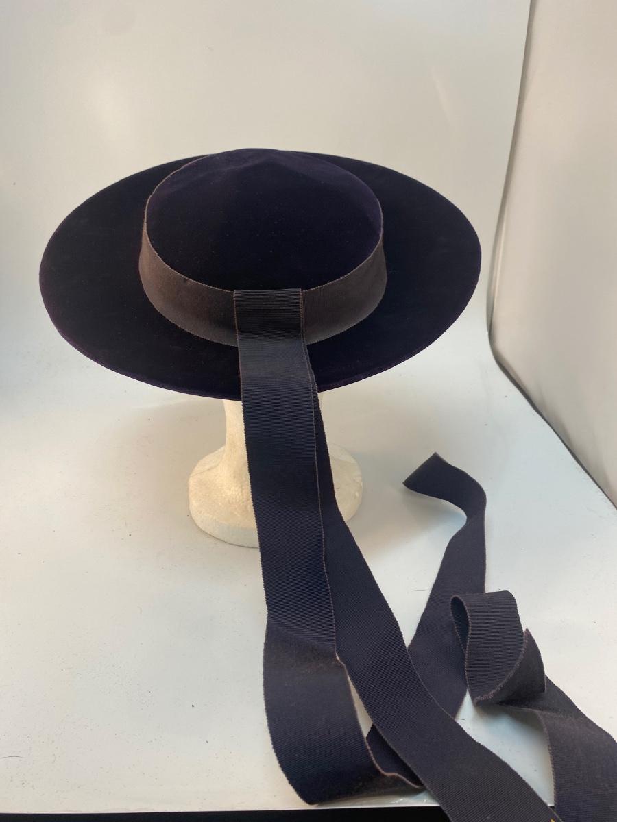 Vintage Wide Brim Platter Hat with Long Ribbon Tail