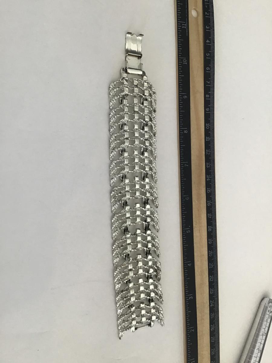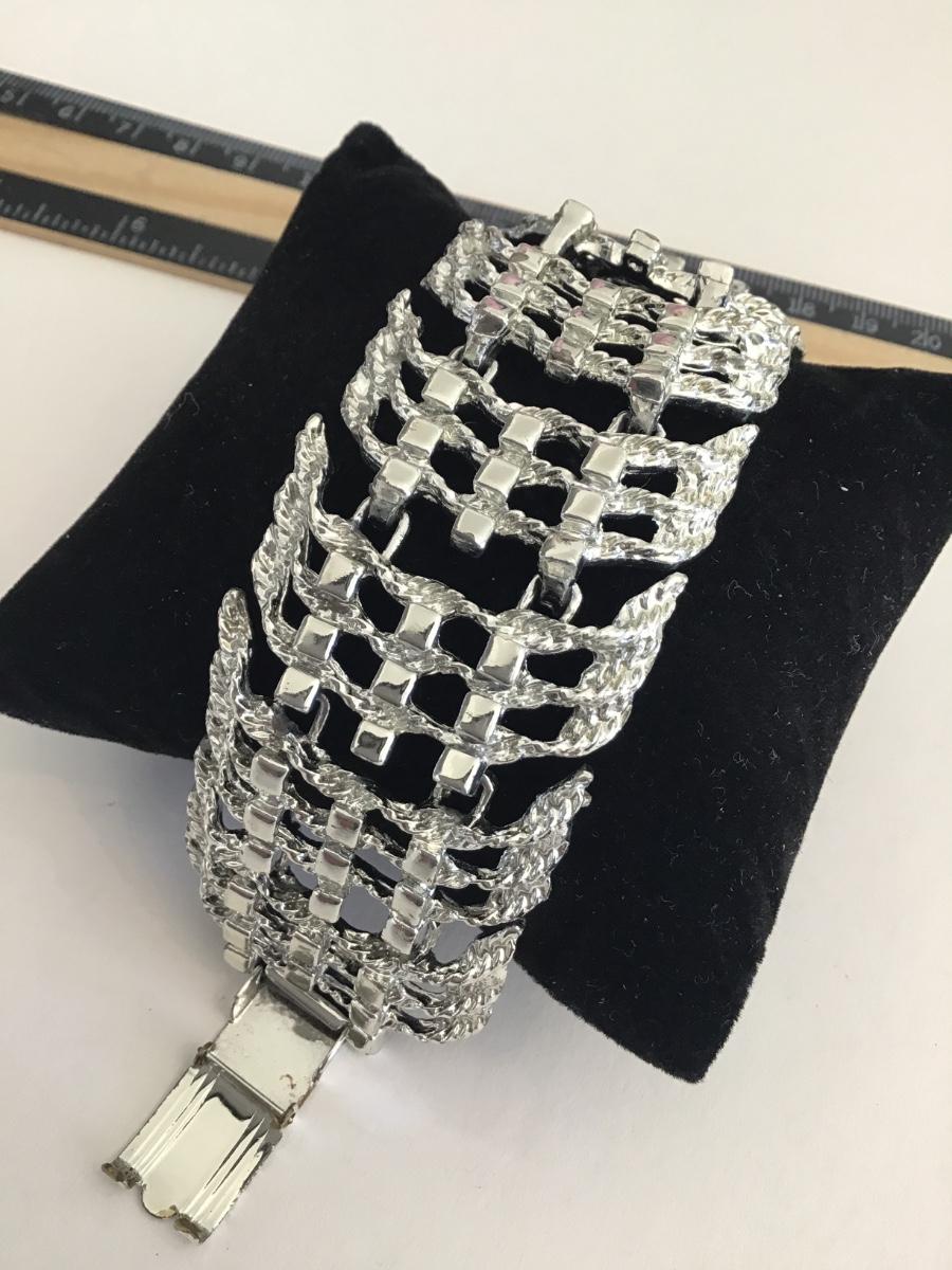 Vintage Wide Link Bracelet Silvertone