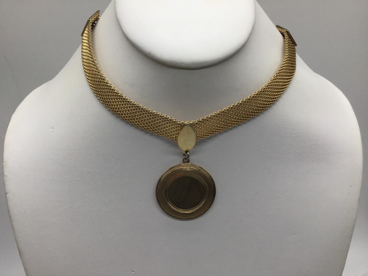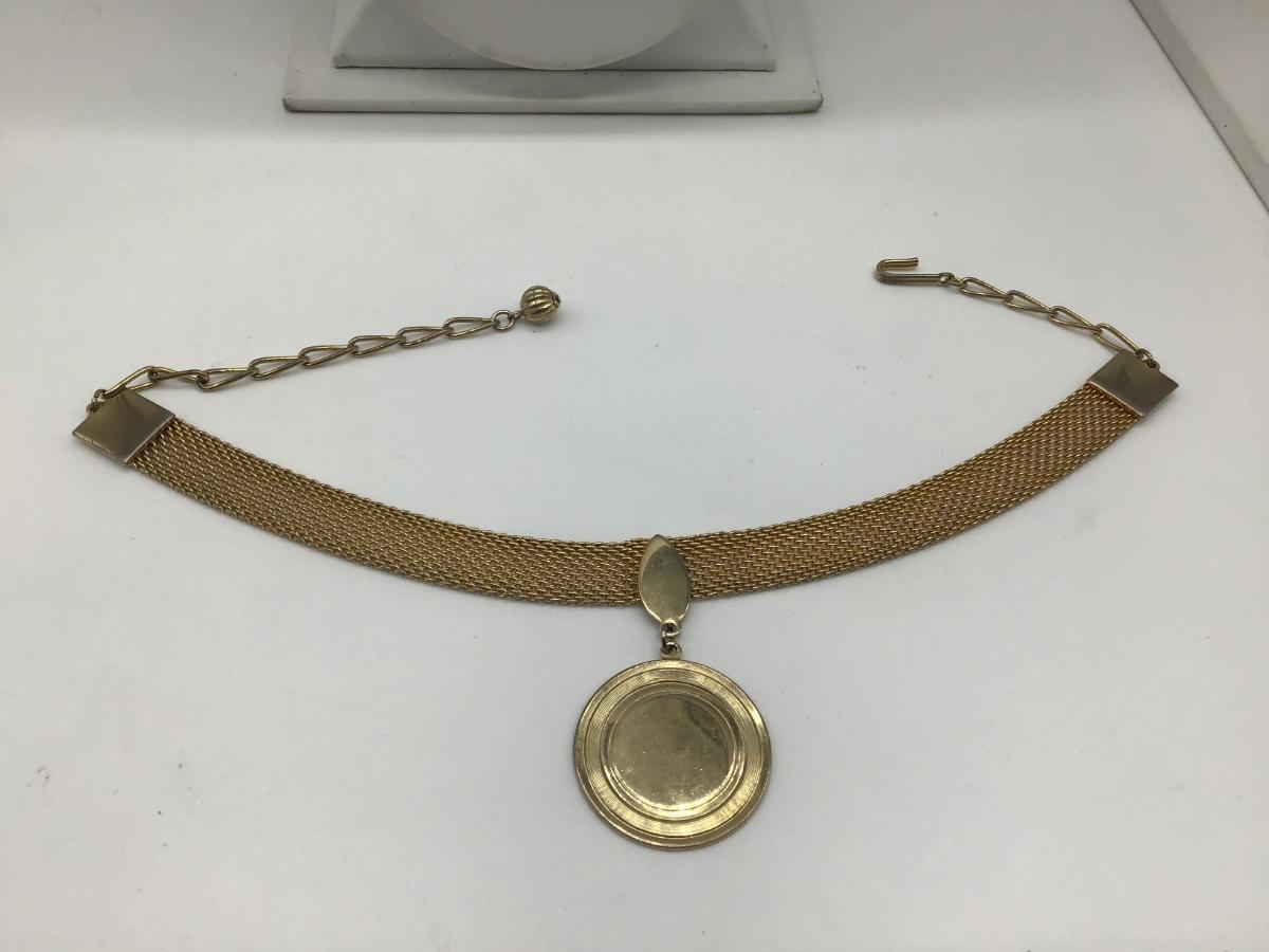 Vintage Wide Mesh Gold Tone Choker Necklace