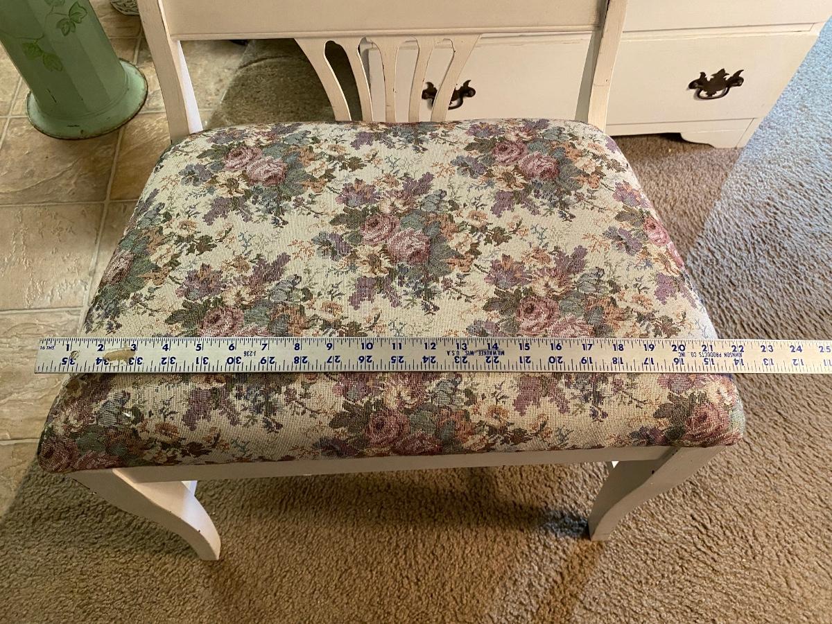 Vintage Wide Seat Stool Bench Vanity Chair. In good condition. **Currently off site in Brea, owner downsizing. Pick up will be after July 14th, we will schedule with winning bidders after that date.**