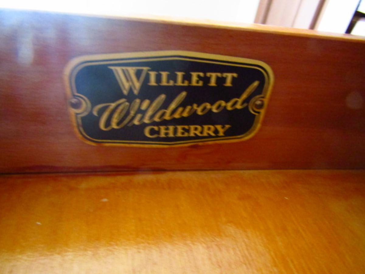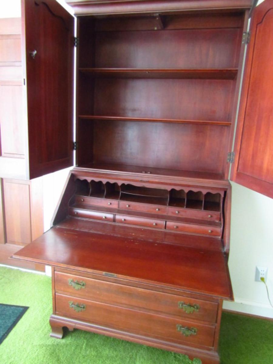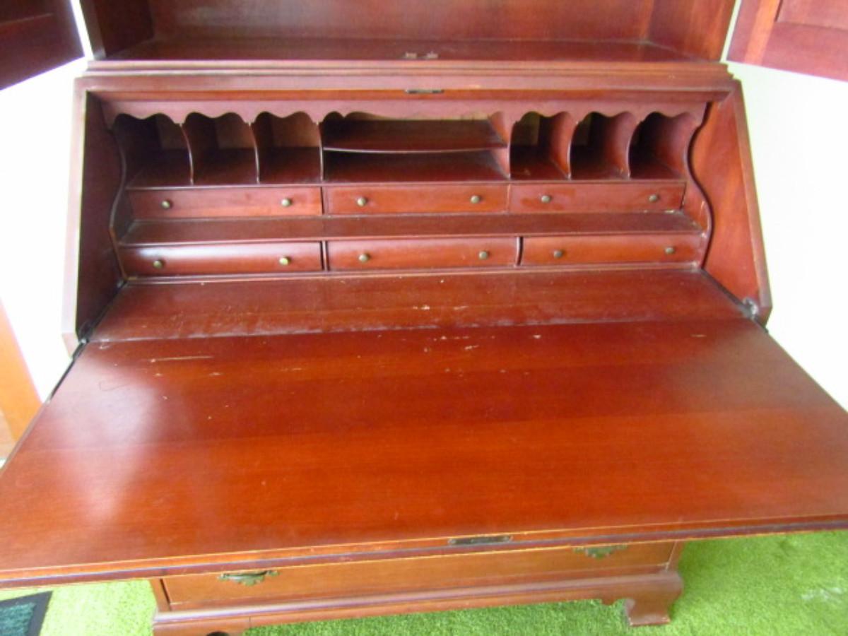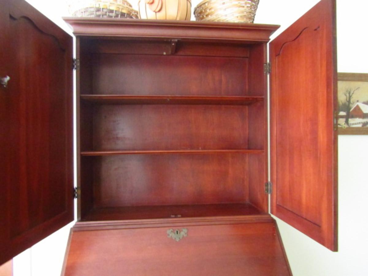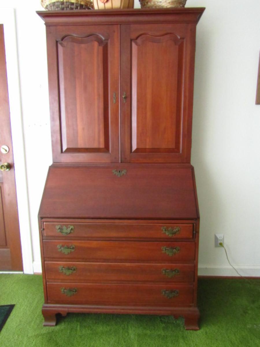 Vintage Wild Cherry Wood Secretary with Hutch by Willett. Made in Louisville, KY. With gallery insert and dovetailed drawers. Measures approx 37" wide, 20" deep, 76" tall.