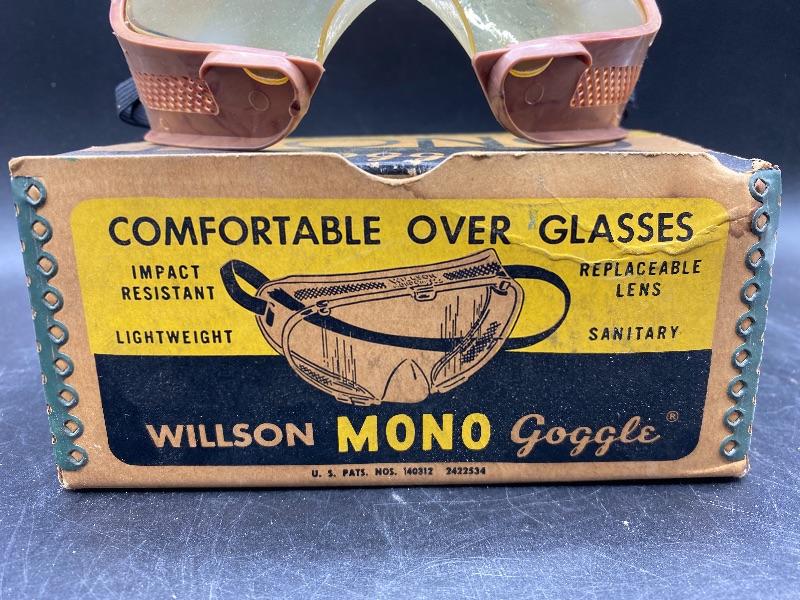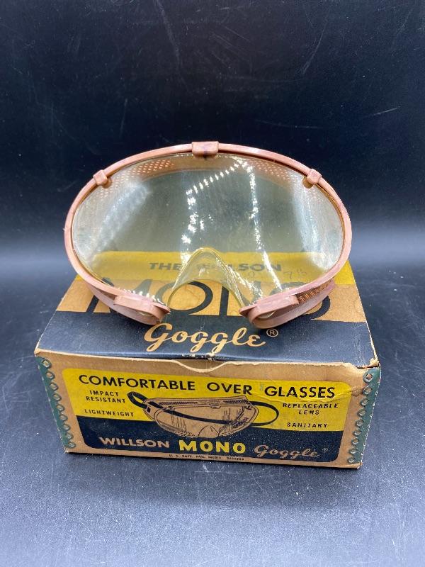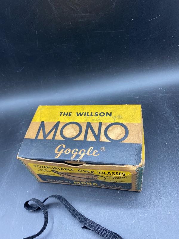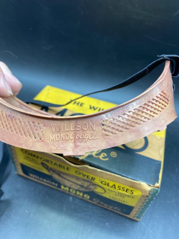 Vintage Wilson Mono Goggle in original box. Good condition. Elastic has age, does not shrink back. Great for display, box looks good also.