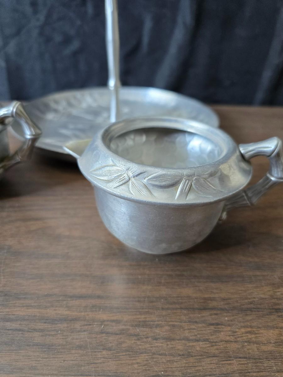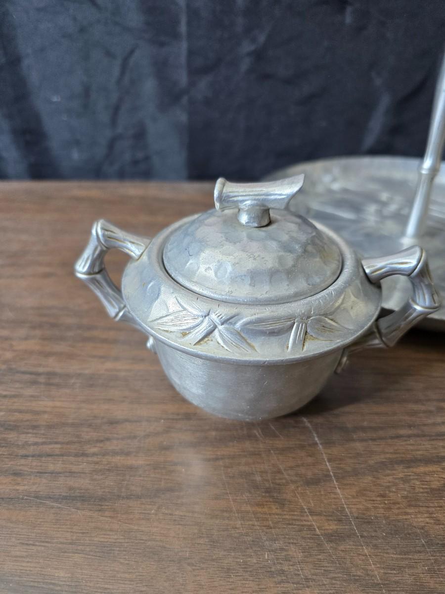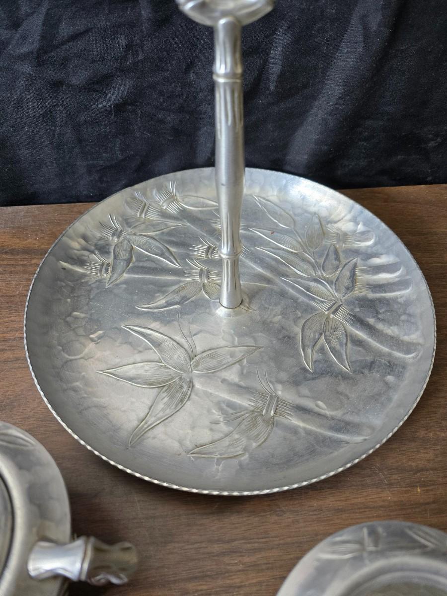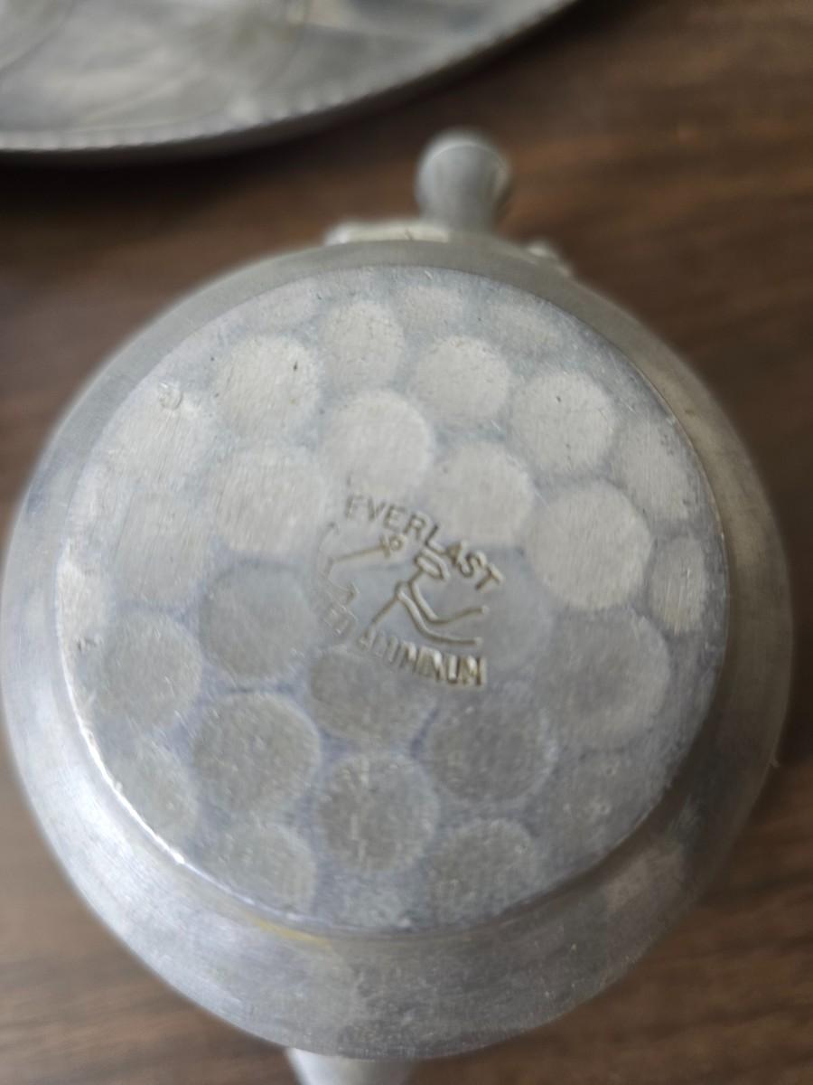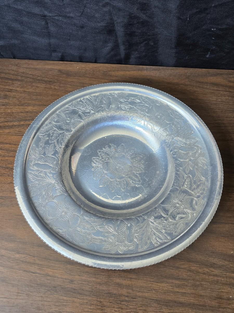 Vintage Wilson Specialties hand wrought aluminum dishware and a Thankful artwork