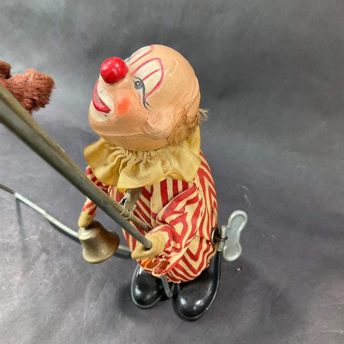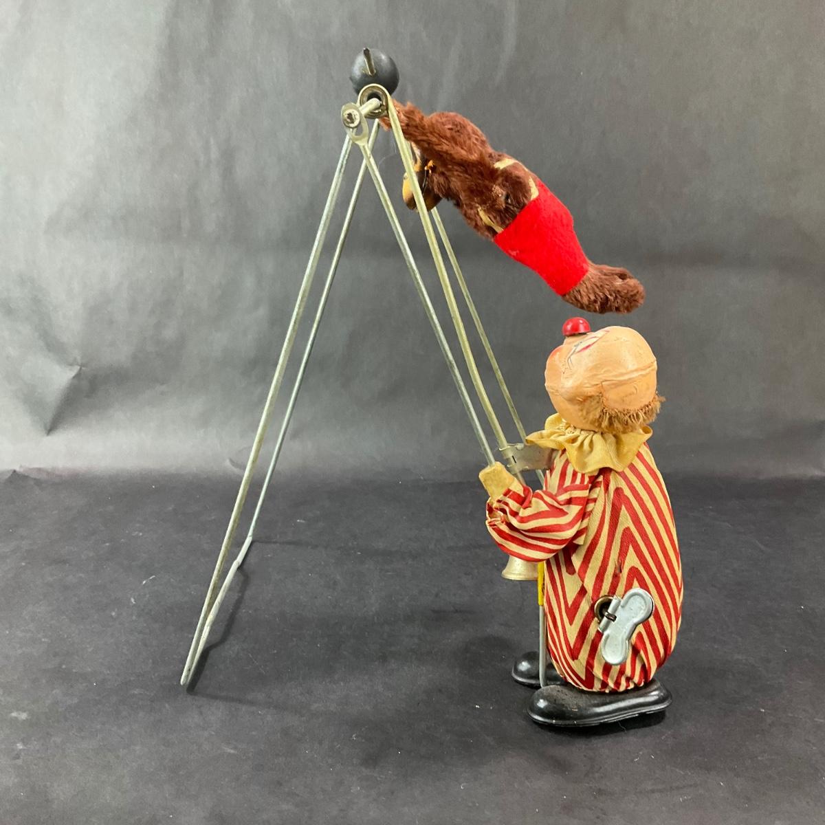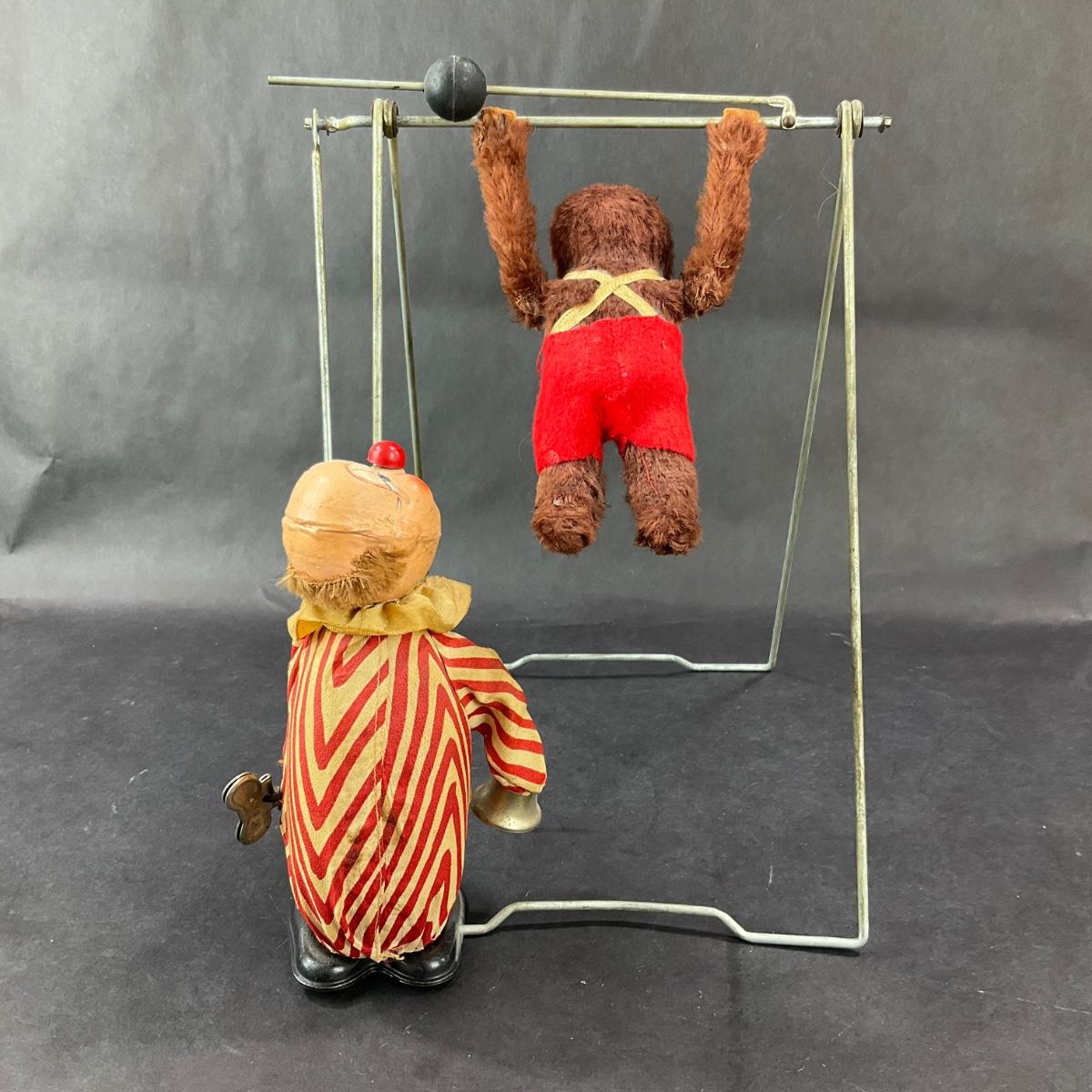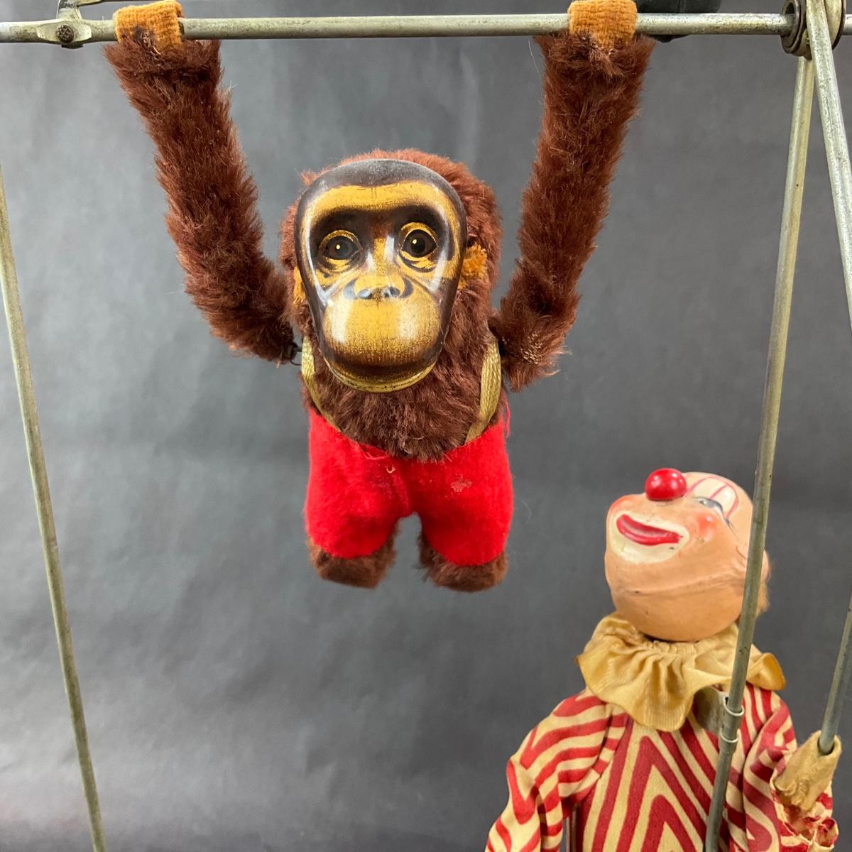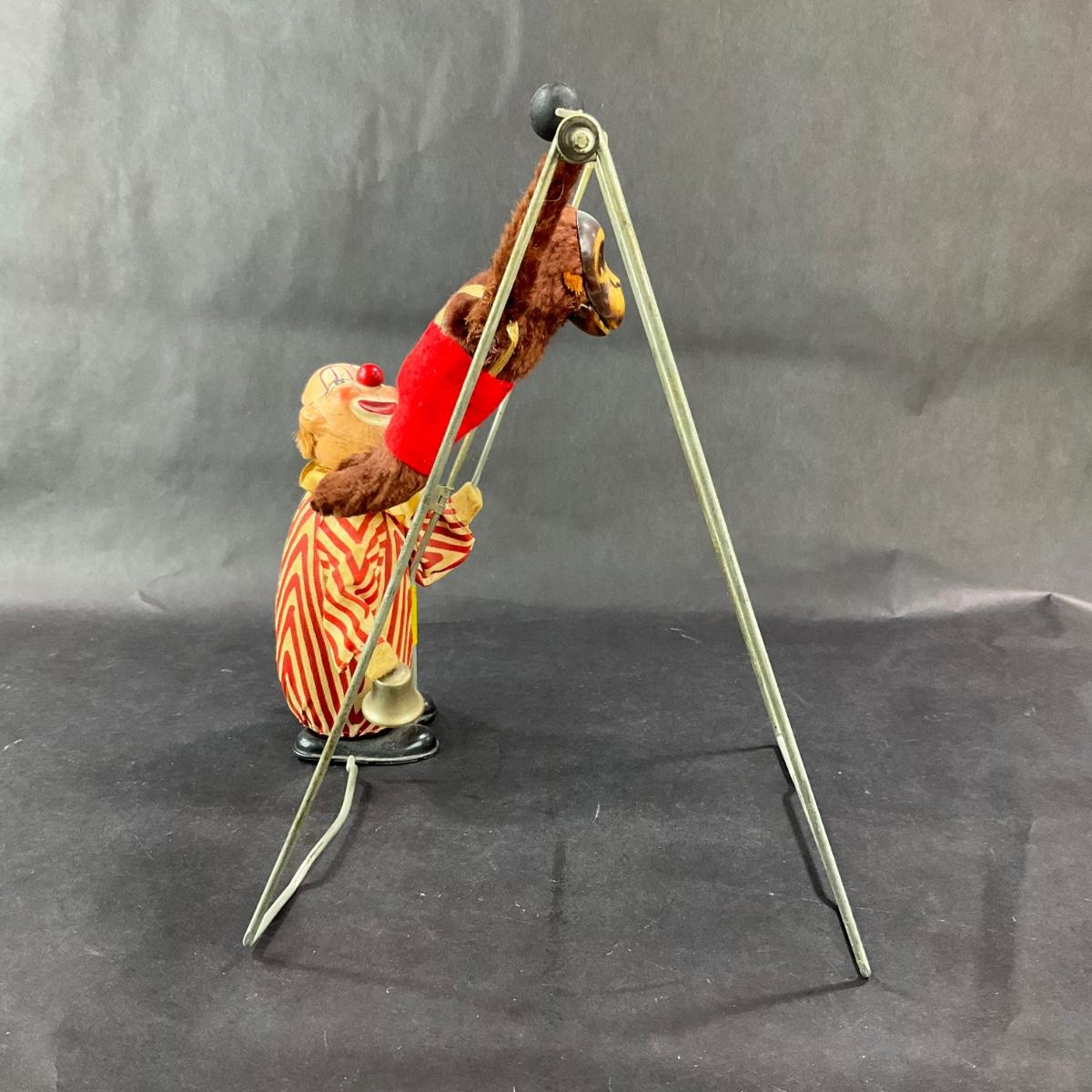 This toy works extremely well. You can determine how fast the monkey goes after winding up the clown and moving the top bar with the balancing ball on it to an upright position. **Works, Video of Function on YouTube Video, Has Key** Please see photos for details and condition. **|** ::: Shipping is available on this lot. If you require shipping you must let us know at the close of the auction. We will coordinate with you after the item has been won. Shipping fees will include insurance up to or exceeding the value of all items being mailed. If you have any questions regarding this lot please contact the auctioneer either via this website, by direct email or by phone. PICK UP TIMES and other important information can be found in the TERMS and DESCRIPTION of the auction. Please take a look for pertinent information. Thanks!