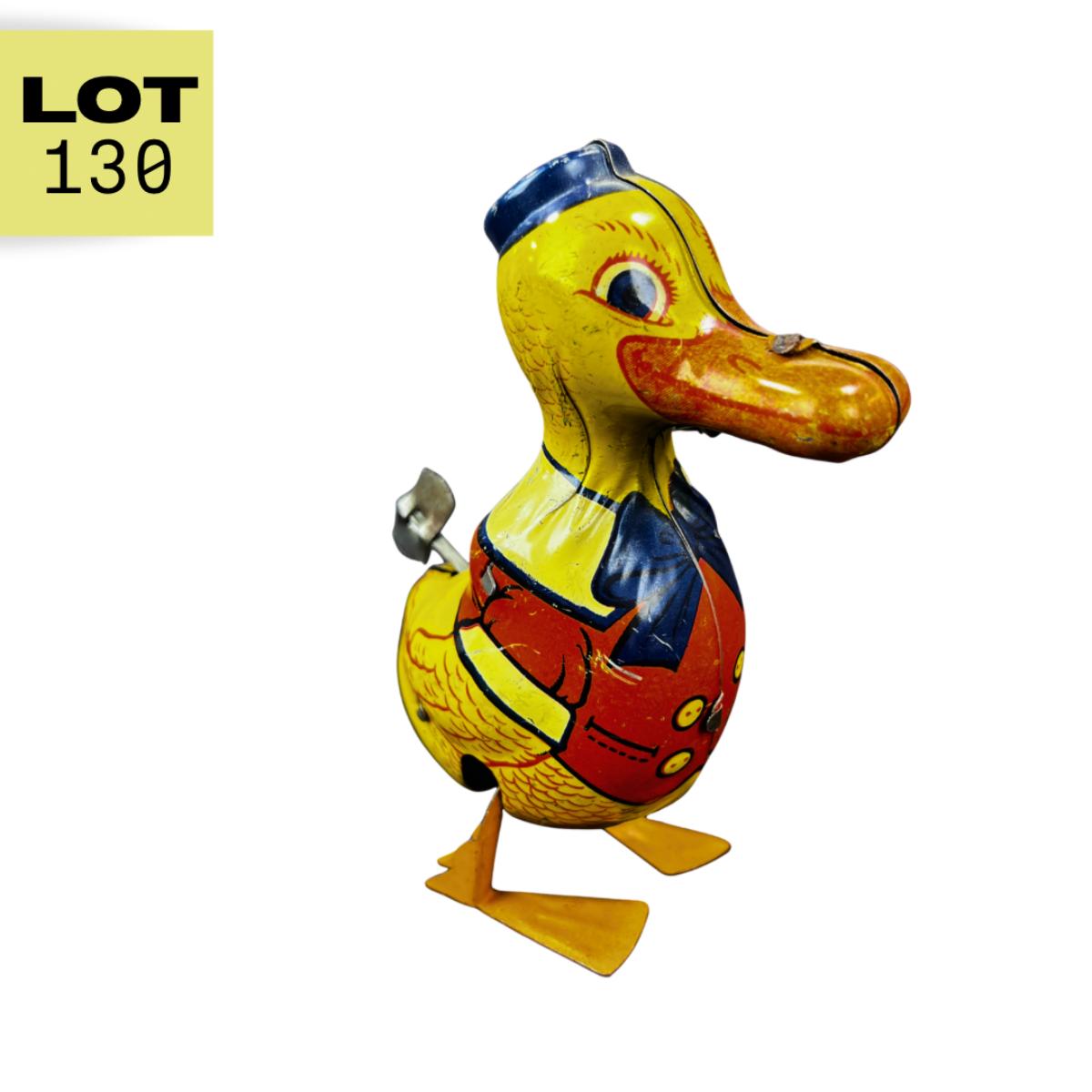This Waddling Duck was produced by J Chein in the Mid 1900s. This duck has great color! **Works, Video of Function on YouTube Video, Has Key** Please see photos for details and condition. **|** ::: Shipping is available on this lot. If you require shipping you must let us know at the close of the auction. We will coordinate with you after the item has been won. Shipping fees will include insurance up to or exceeding the value of all items being mailed. If you have any questions regarding this lot please contact the auctioneer either via this website, by direct email or by phone. PICK UP TIMES and other important information can be found in the TERMS and DESCRIPTION of the auction. Please take a look for pertinent information. Thanks!