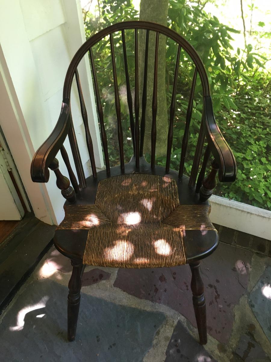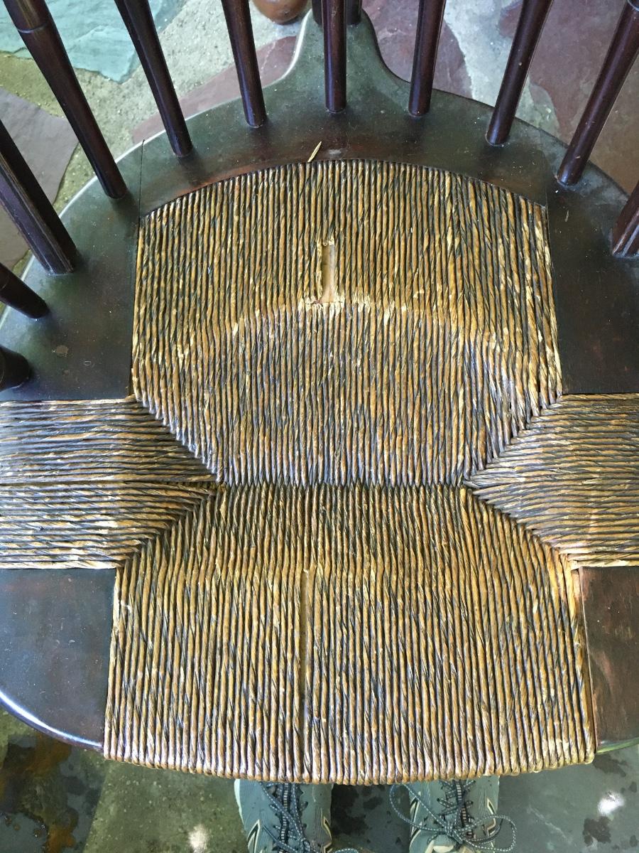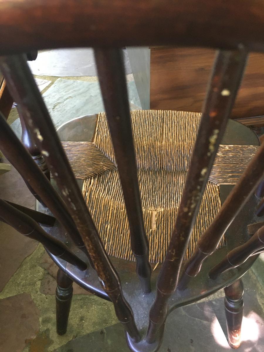 Wood chair in overall good condition except for damage to seat as shown in photo.