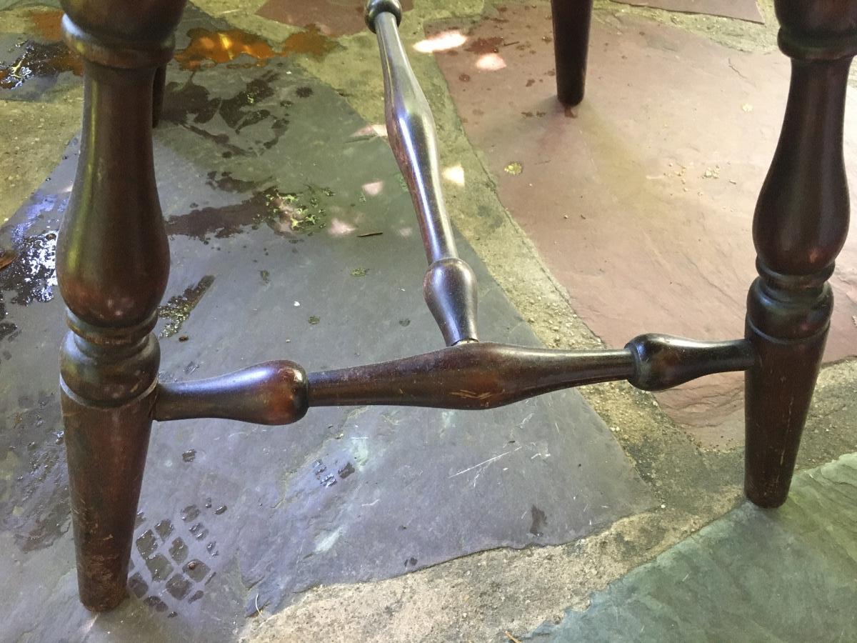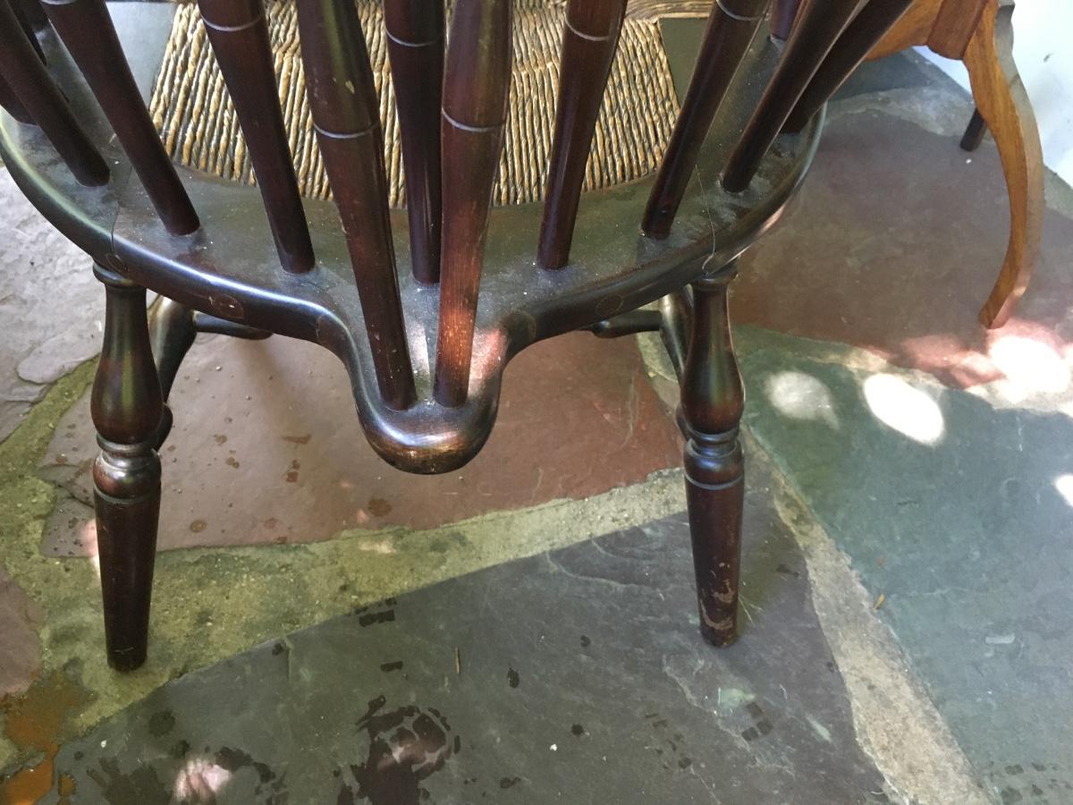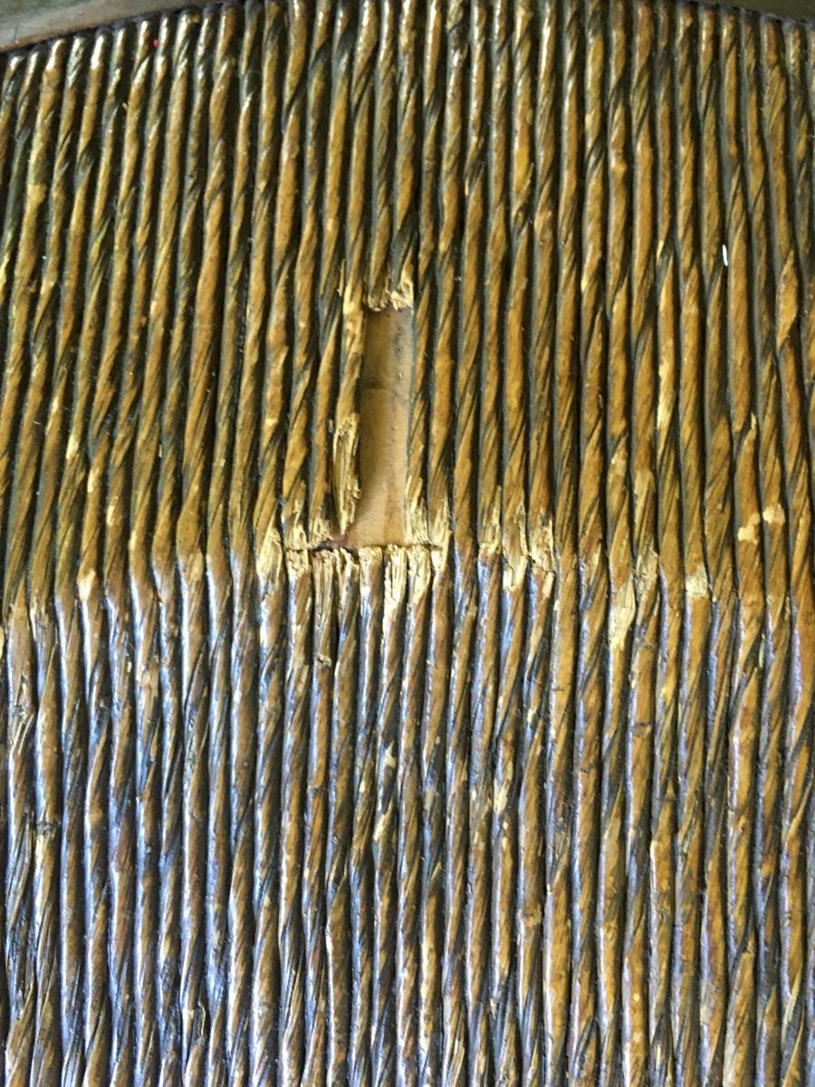 Wood chair in overall good condition except for damage to seat as shown in photo.