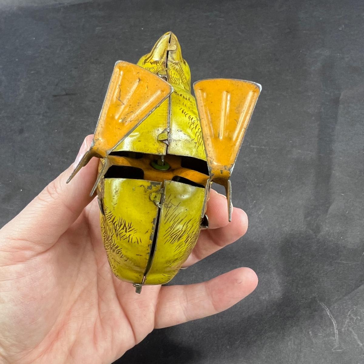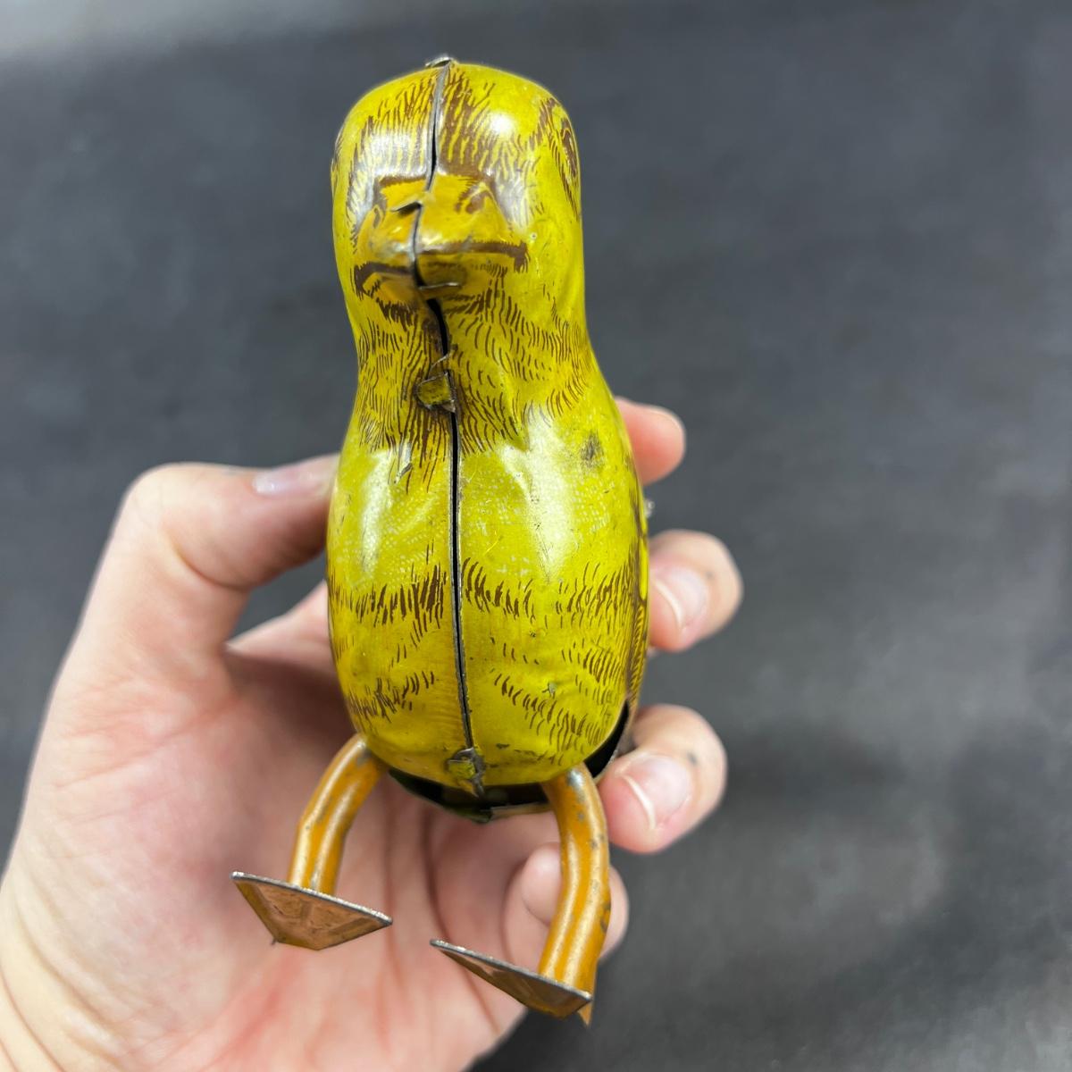 A sweet little hopping Chick, brought to you by J. Chein. Made in the USA. This toy was produced in the 1930s and 40s. **Works, Video of Function on YouTube Video, Has Key** Please see photos for details and condition. **|** ::: Shipping is available on this lot. If you require shipping you must let us know at the close of the auction. We will coordinate with you after the item has been won. Shipping fees will include insurance up to or exceeding the value of all items being mailed. If you have any questions regarding this lot please contact the auctioneer either via this website, by direct email or by phone. PICK UP TIMES and other important information can be found in the TERMS and DESCRIPTION of the auction. Please take a look for pertinent information. Thanks!