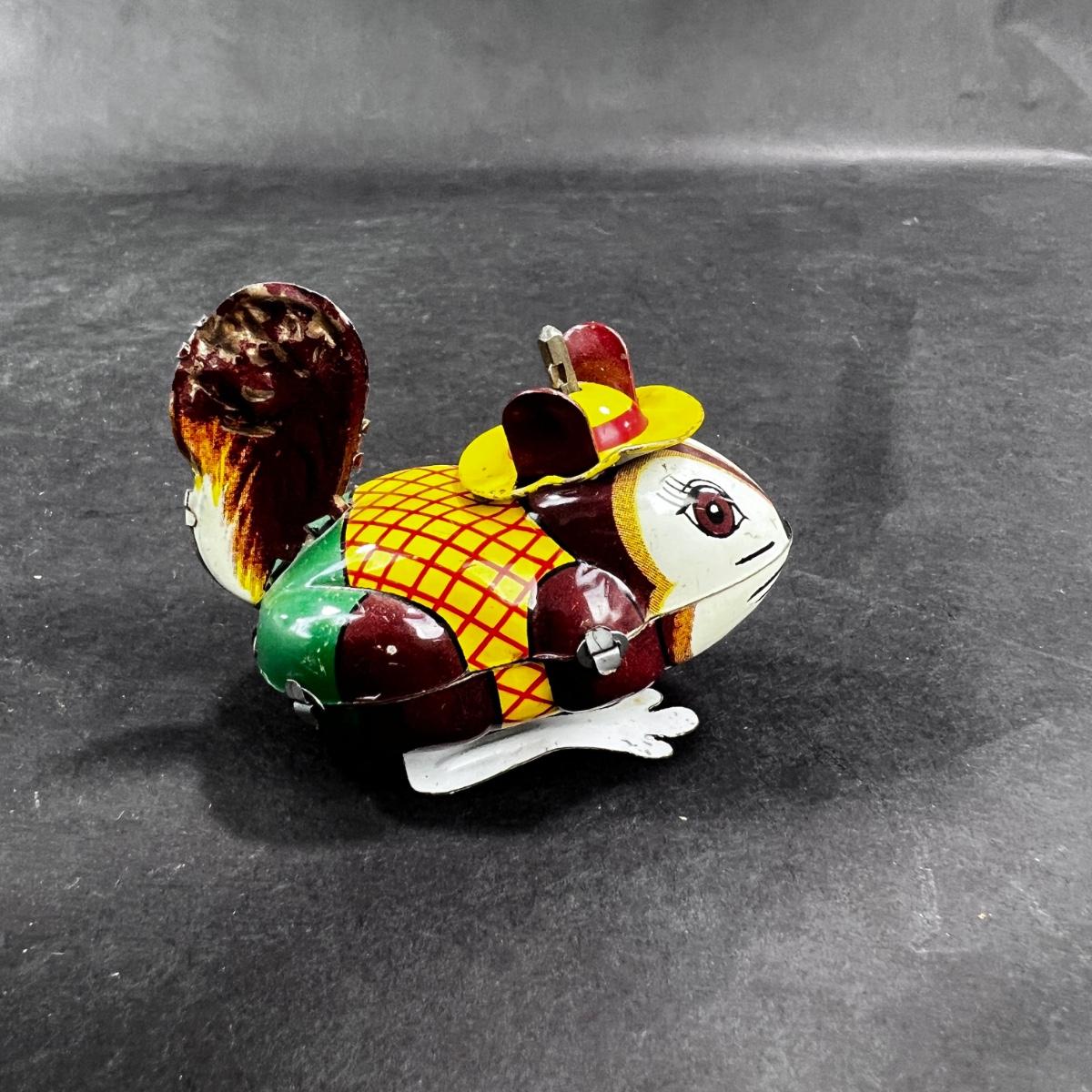 This small Hopping Squirrel was produced in Japan in the 1960s. This Hopping Squirrel does not come with a key. **Works, Video of Function on YouTube Video** Please see photos for details and condition. **|** ::: Shipping is available on this lot. If you require shipping you must let us know at the close of the auction. We will coordinate with you after the item has been won. Shipping fees will include insurance up to or exceeding the value of all items being mailed. If you have any questions regarding this lot please contact the auctioneer either via this website, by direct email or by phone. PICK UP TIMES and other important information can be found in the TERMS and DESCRIPTION of the auction. Please take a look for pertinent information. Thanks!