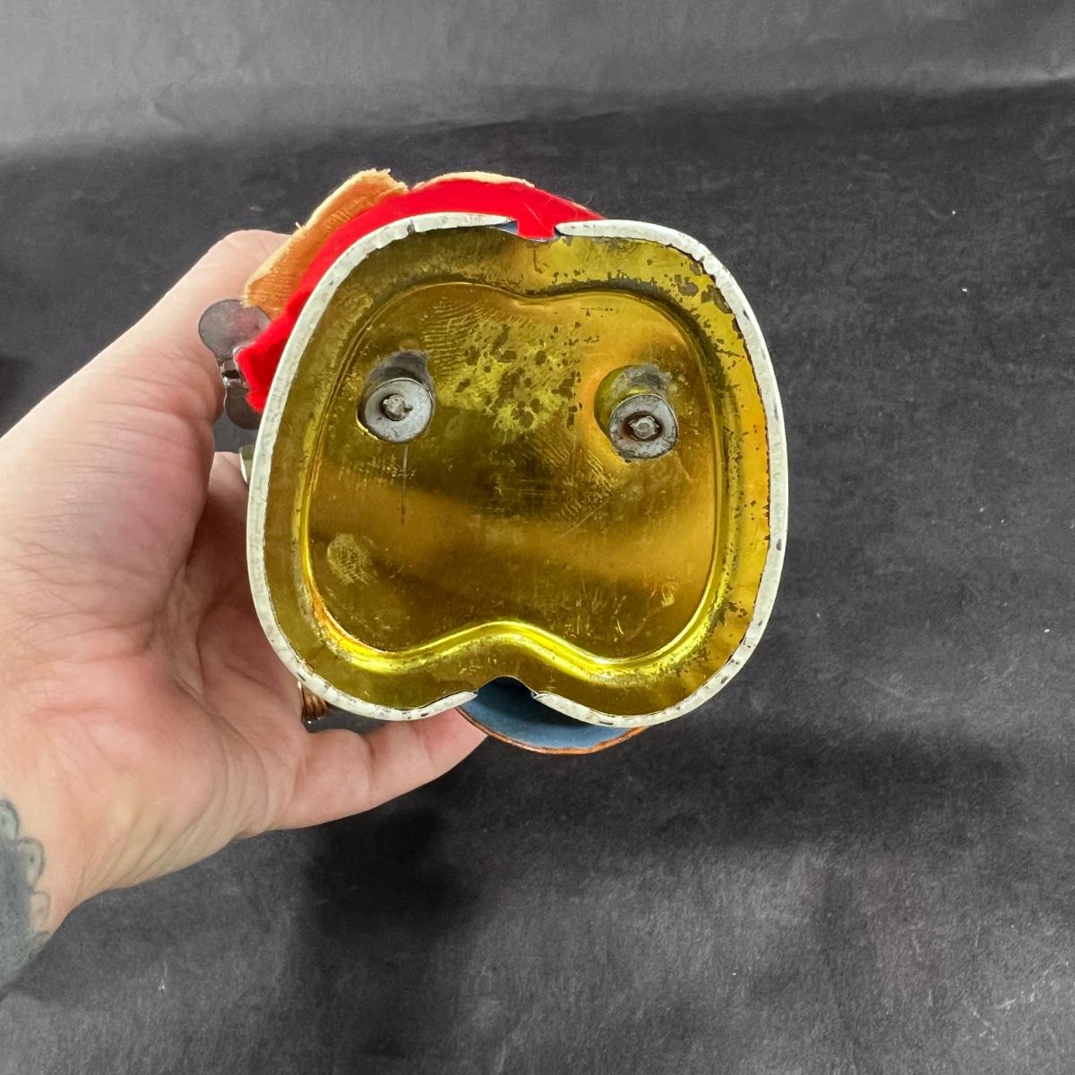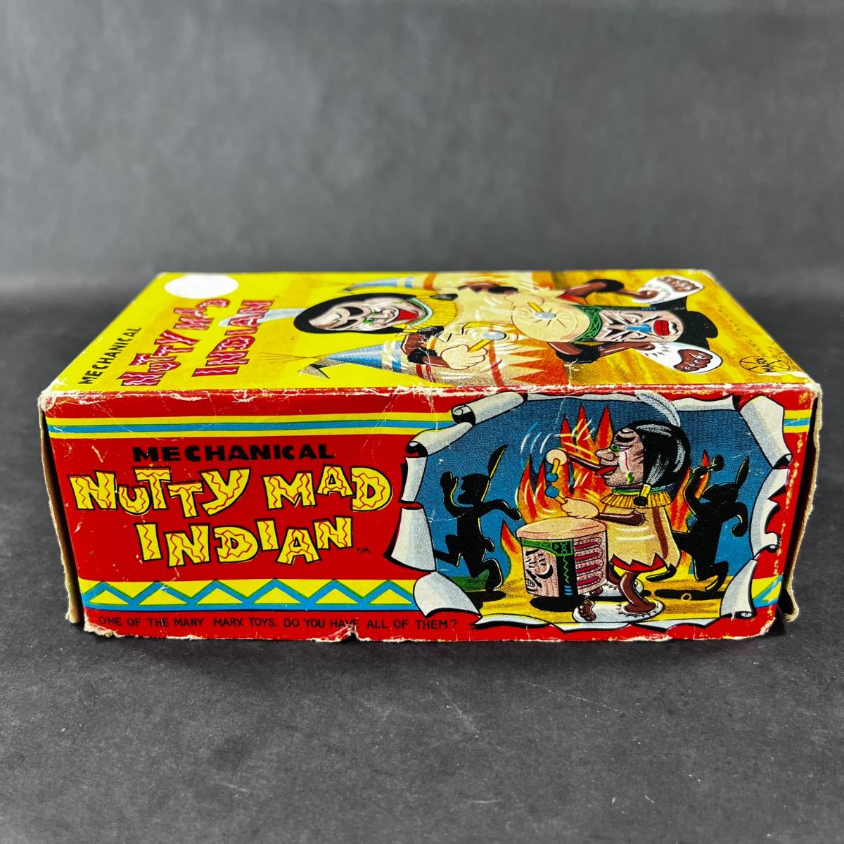 This Mechanical Wind-Up Nutty Mad Indian was produced by Marx before they realized how racist it was, right around the mid 1900s. This toy comes with its original box. **Works, Video of Function on YouTube Video, Has Key** Please see photos for details and condition. **|** ::: Shipping is available on this lot. If you require shipping you must let us know at the close of the auction. We will coordinate with you after the item has been won. Shipping fees will include insurance up to or exceeding the value of all items being mailed. If you have any questions regarding this lot please contact the auctioneer either via this website, by direct email or by phone. PICK UP TIMES and other important information can be found in the TERMS and DESCRIPTION of the auction. Please take a look for pertinent information. Thanks!