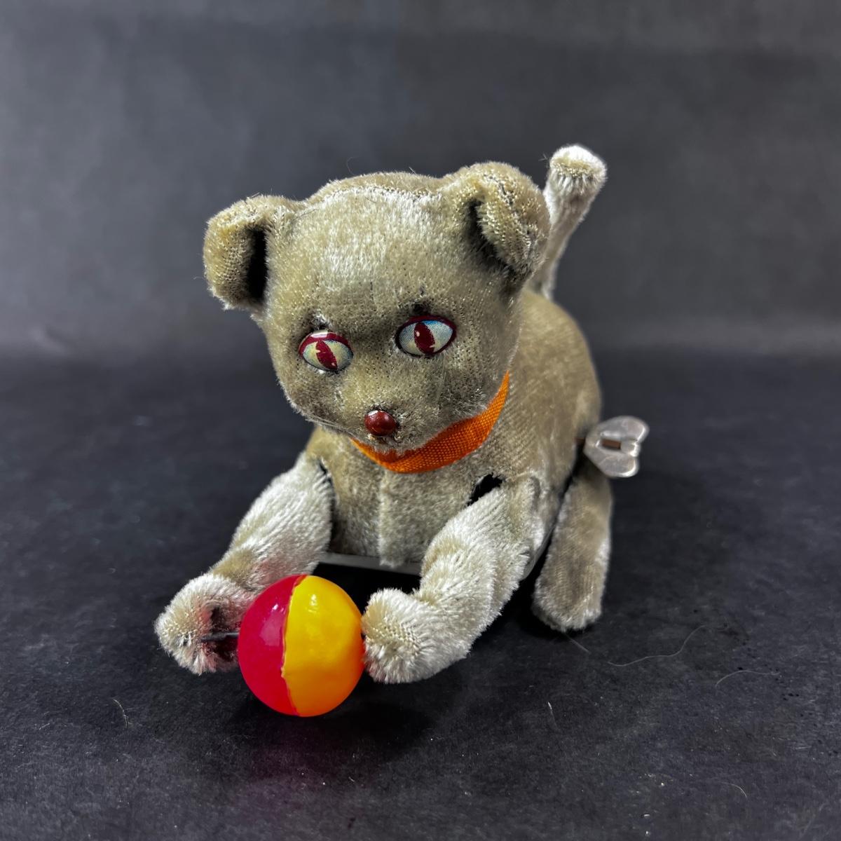 This sweet Plush Wind-Up Cat with Ball was produced in the mid 1900s. This cat isn't marked with a maker, but regardless it works great. Ball is celluloid. **Works, Video of Function on YouTube Video, Has Key** Please see photos for details and condition. **|** ::: Shipping is available on this lot. If you require shipping you must let us know at the close of the auction. We will coordinate with you after the item has been won. Shipping fees will include insurance up to or exceeding the value of all items being mailed. If you have any questions regarding this lot please contact the auctioneer either via this website, by direct email or by phone. PICK UP TIMES and other important information can be found in the TERMS and DESCRIPTION of the auction. Please take a look for pertinent information. Thanks!