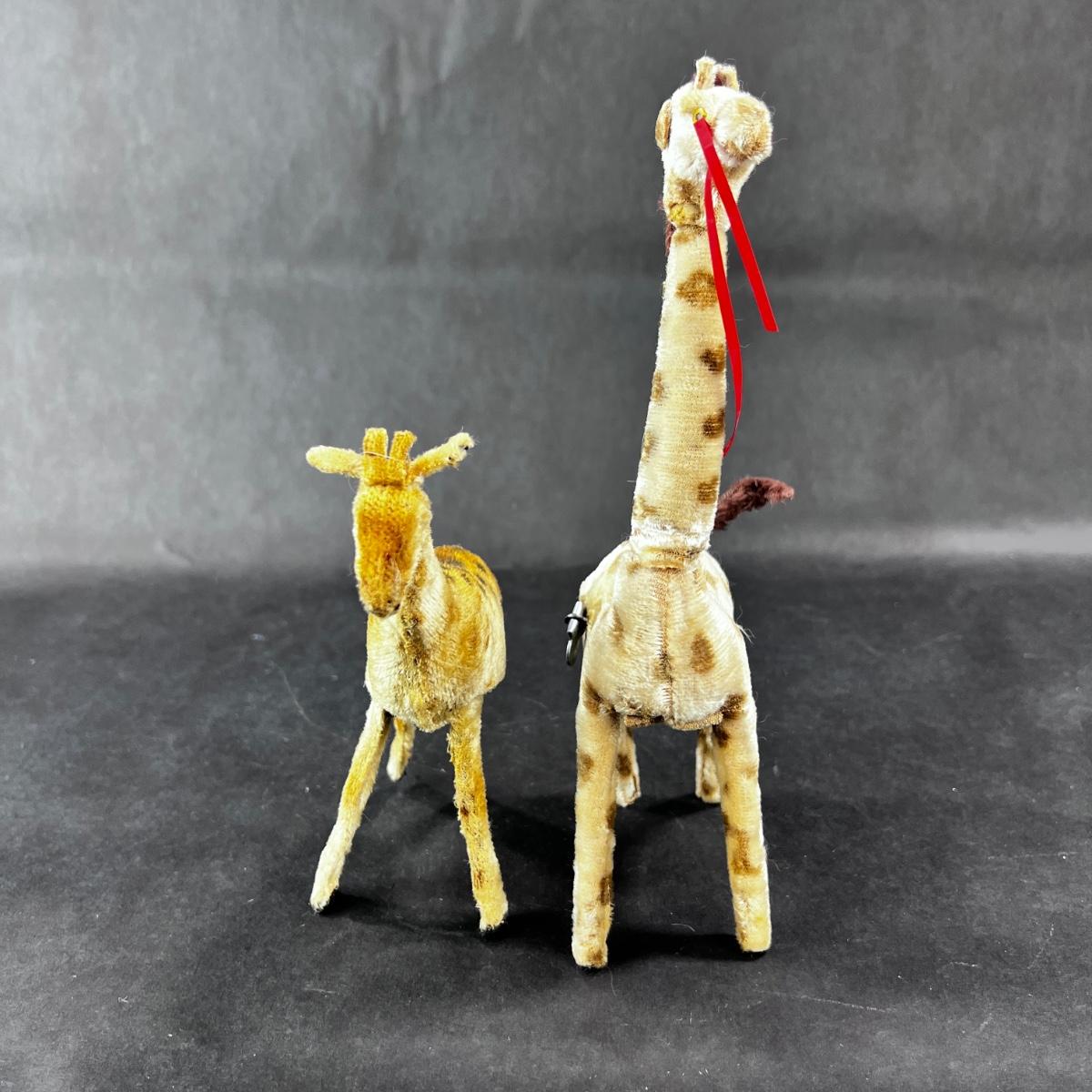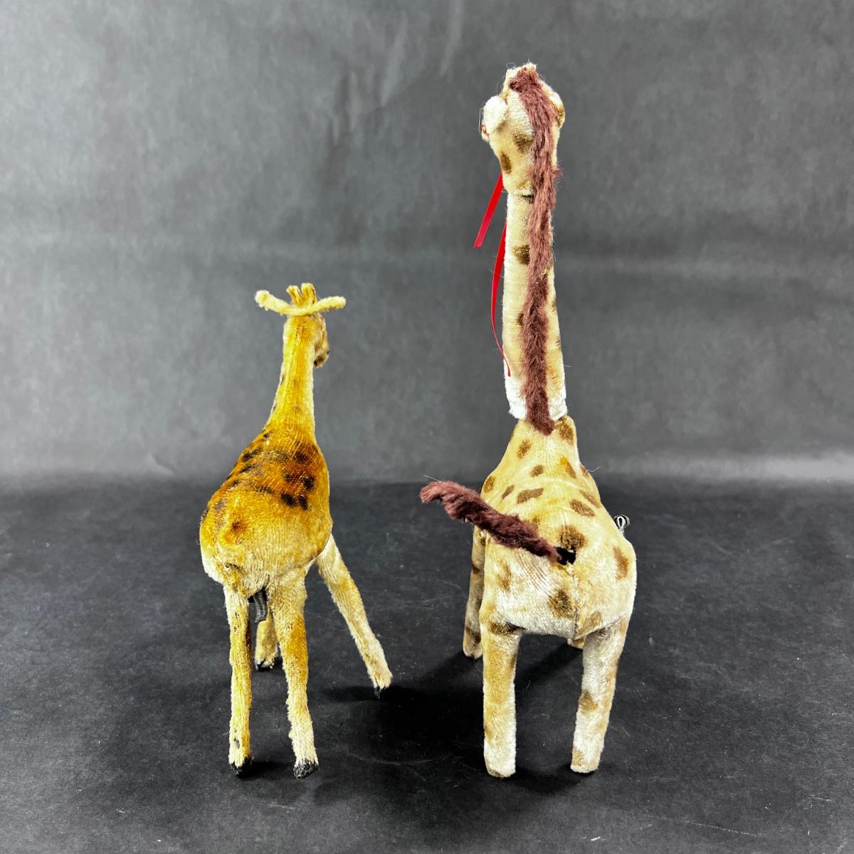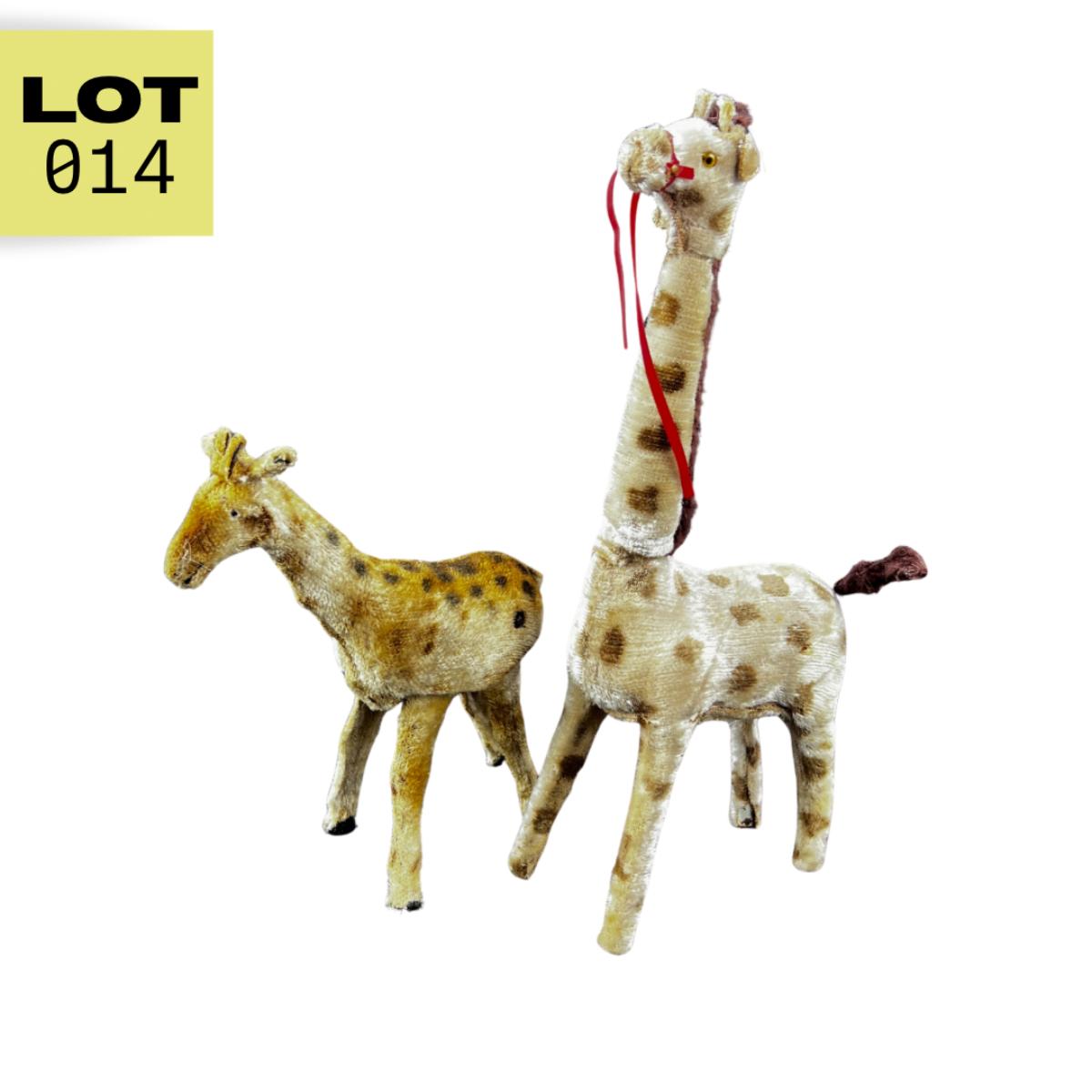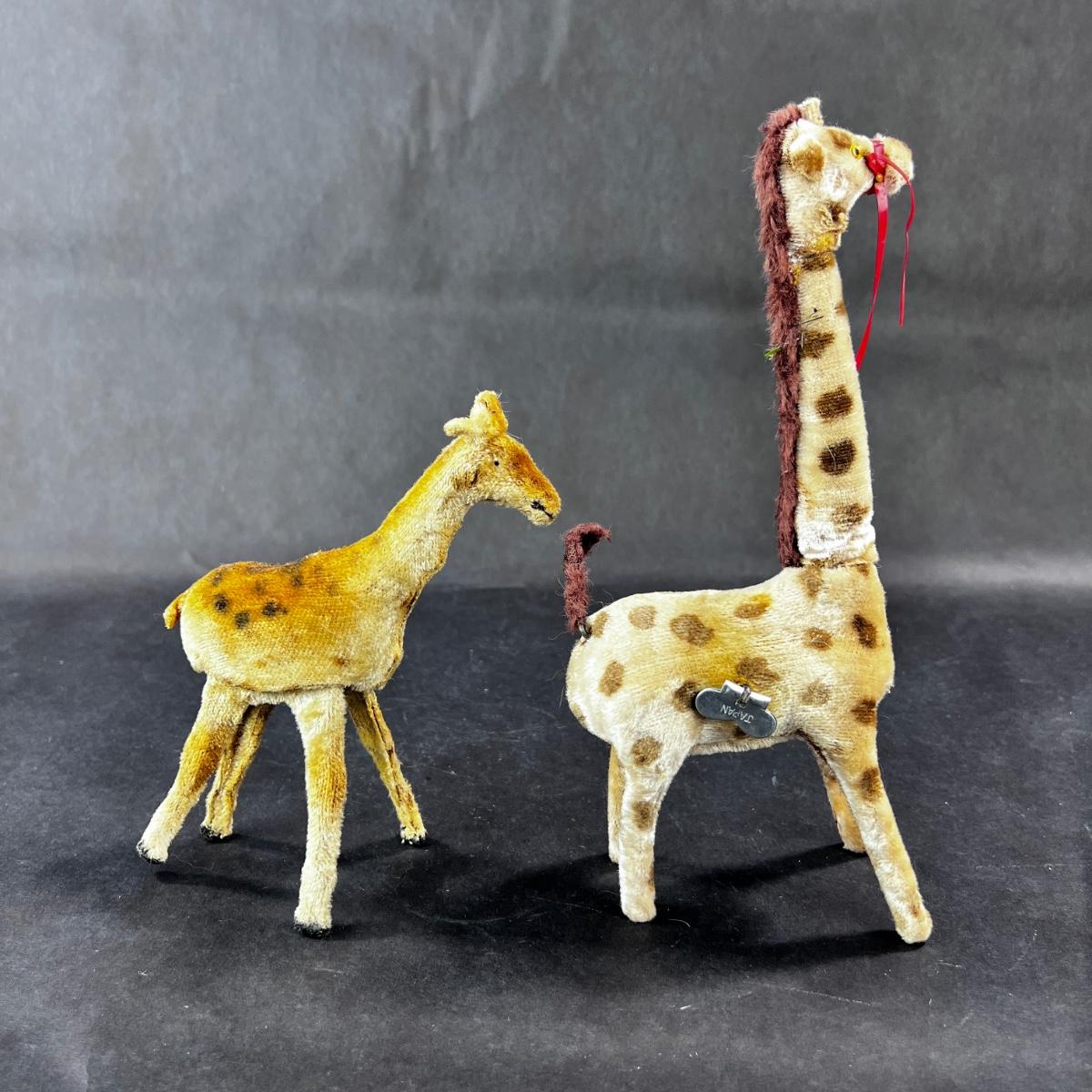 A nice pair of Plush Giraffes. Neither are marked. But Momma and Baby are happy as can be. They both work - albeit differently. The tall one spins their tail and changes head direction. The small one WANTS to run across the table, but only goes crazy when you hold him up. Both come with keys. Video of the described motions is in the YouTube video. **|** Please see photos for details and condition. ::: Shipping is available on this lot. If you require shipping you must let us know at the close of the auction. We will coordinate with you after the item has been won. Shipping fees will include insurance up to or exceeding the value of all items being mailed. If you have any questions regarding this lot please contact the auctioneer either via this website, by direct email or by phone. PICK UP TIMES and other important information can be found in the TERMS and DESCRIPTION of the auction. Please take a look for pertinent information. Thanks!