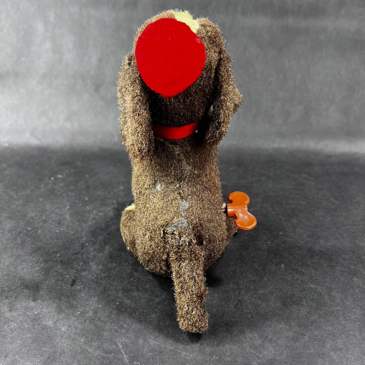 This dog is able to jump to great heights. A bit of the fur is worn over the years, from all that jumping. **Works, Video of Function on YouTube Video, Has Key** Piece isn't marked except for on the turn key, "Made in Japan". **|** Please see photos for details and condition. ::: Shipping is available on this lot. If you require shipping you must let us know at the close of the auction. We will coordinate with you after the item has been won. Shipping fees will include insurance up to or exceeding the value of all items being mailed. If you have any questions regarding this lot please contact the auctioneer either via this website, by direct email or by phone. PICK UP TIMES and other important information can be found in the TERMS and DESCRIPTION of the auction. Please take a look for pertinent information. Thanks!