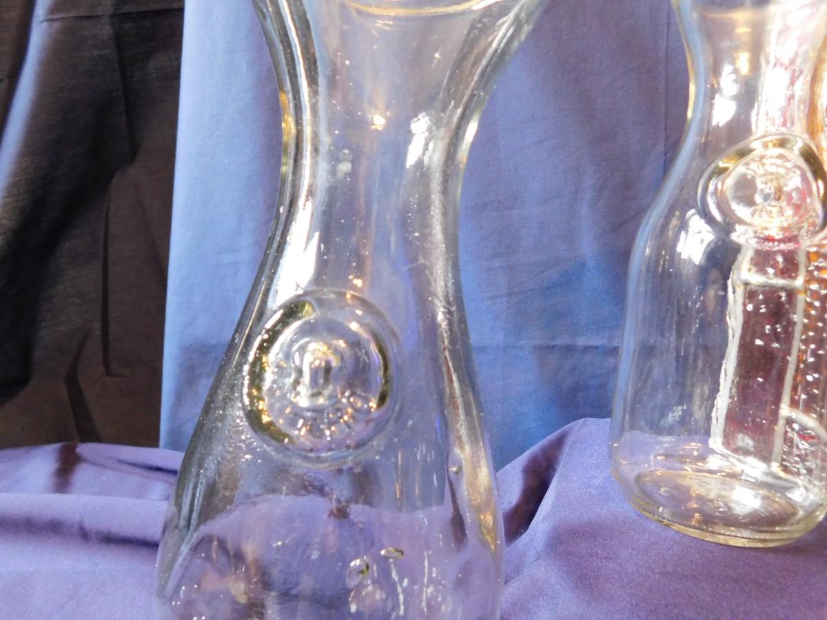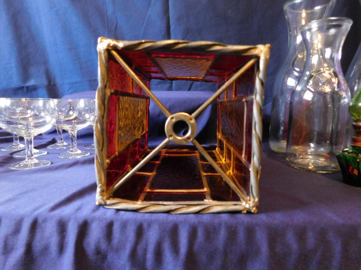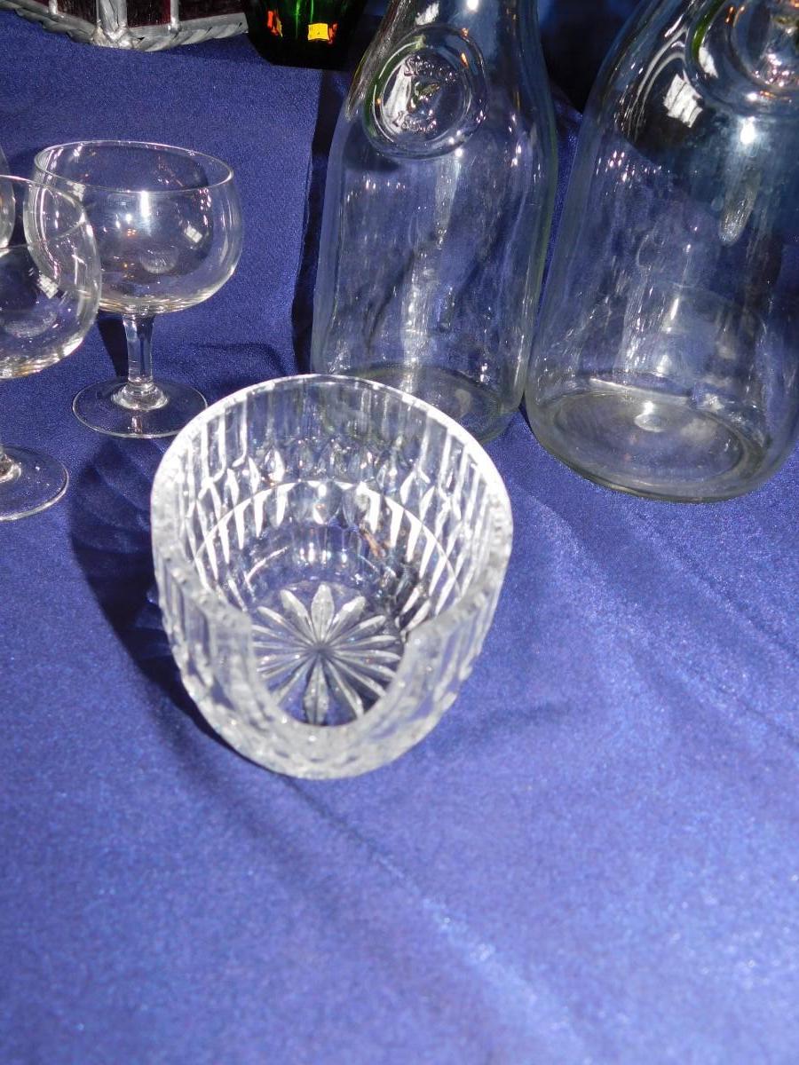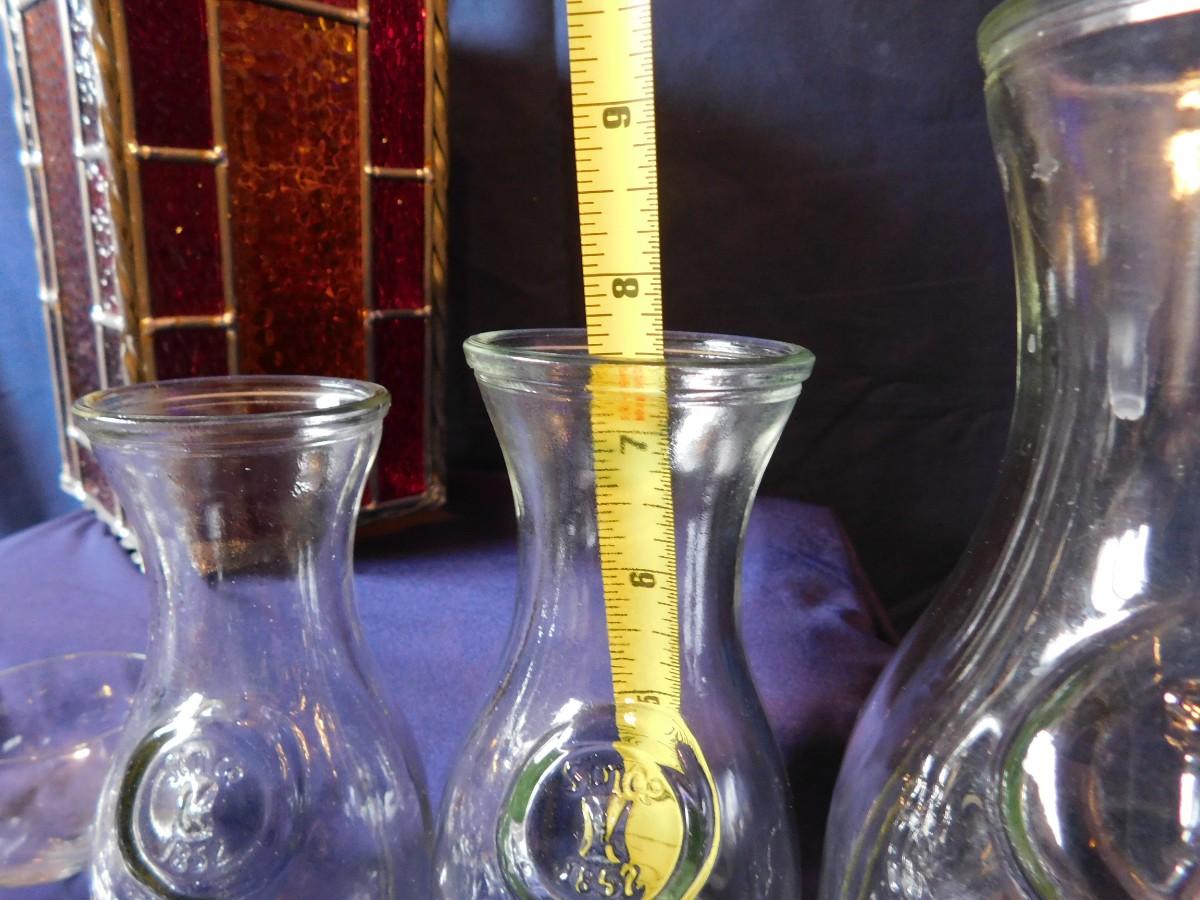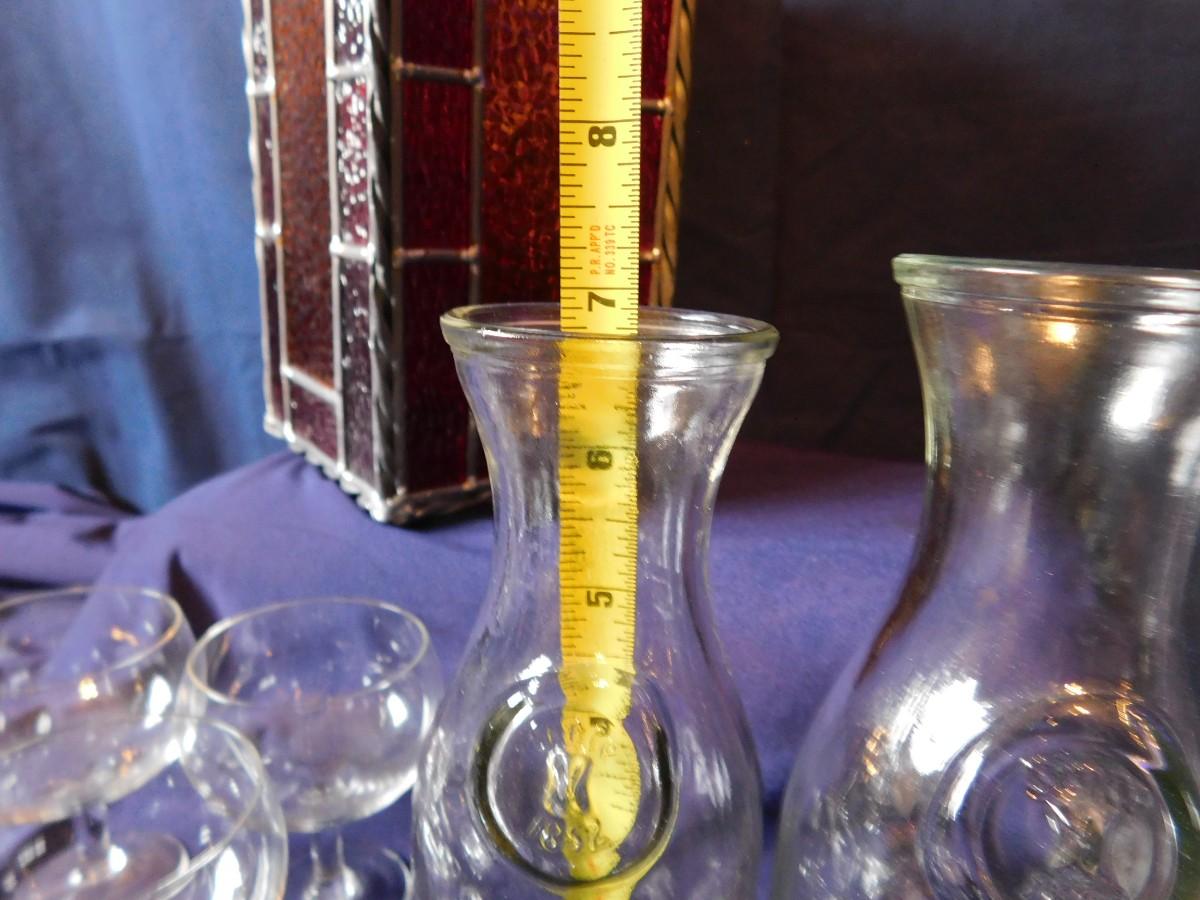 VINTAGE WINE BOTTLE'S IN 4 SIZES, CUTE LITTLE STEMWARE, A STAINED GLASS LIGHT SHADE, & BABY OIL LAMP