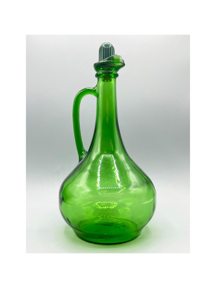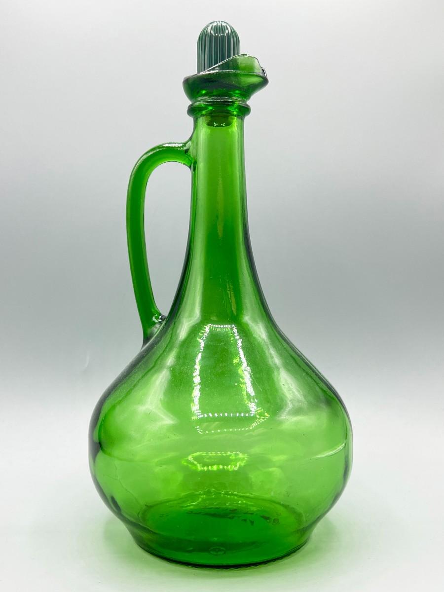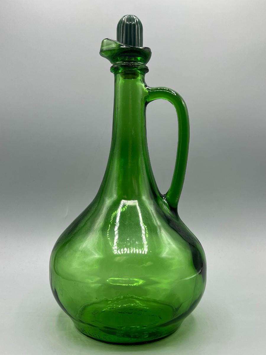 Vintage Wine World Green Glass Long Neck Liquor Decanter