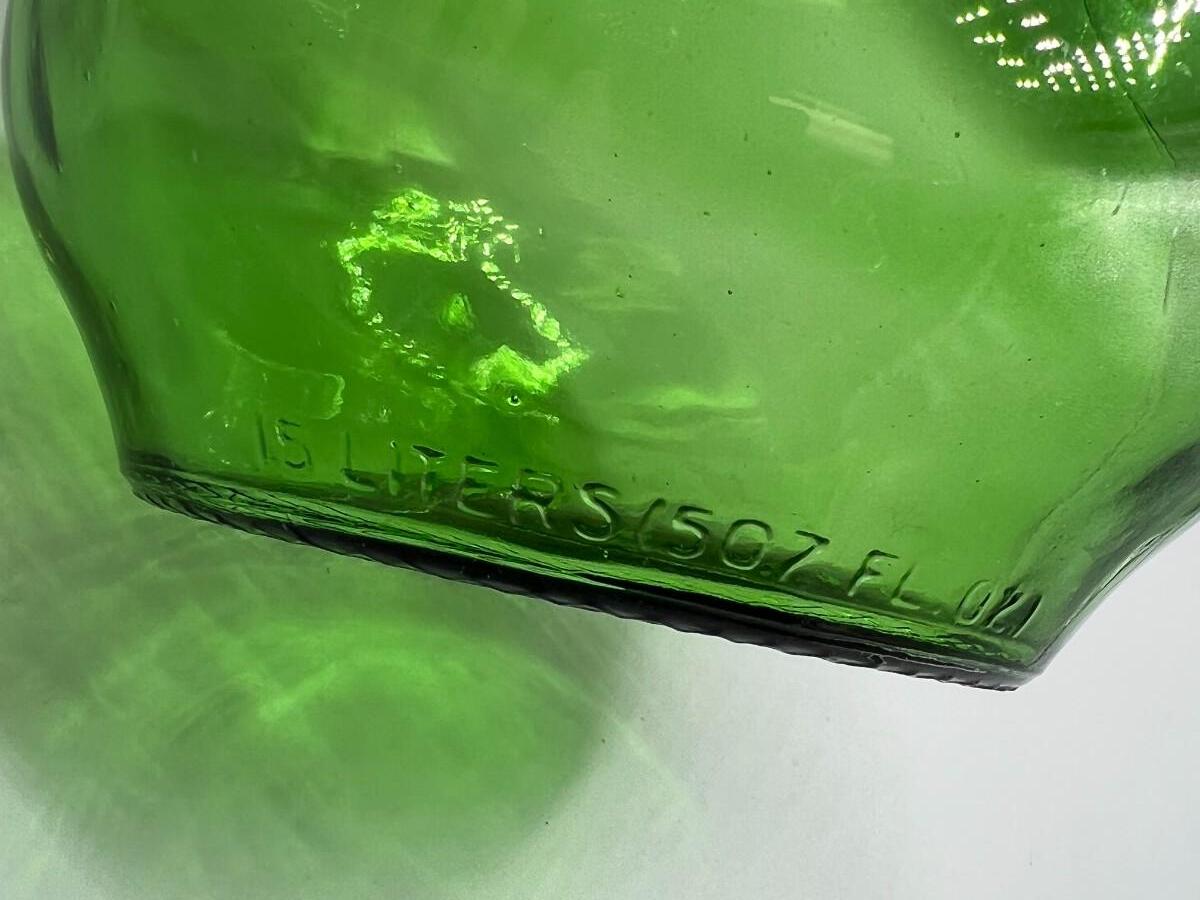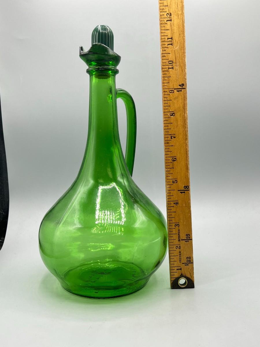 Vintage Wine World Green Glass Long Neck Liquor Decanter, there is no significant damage to the glass and is in good vintage condition. Check pictures for more details and for sizing.