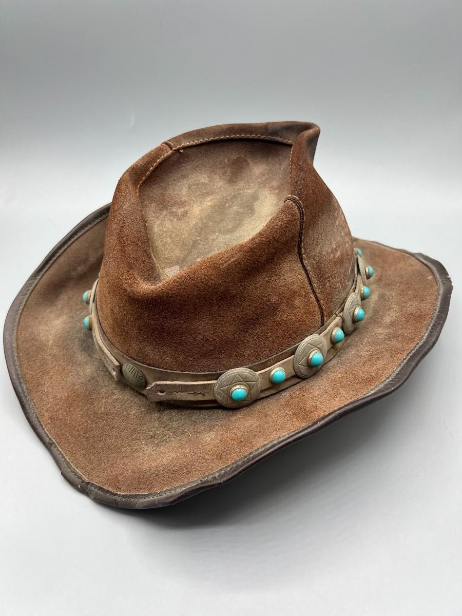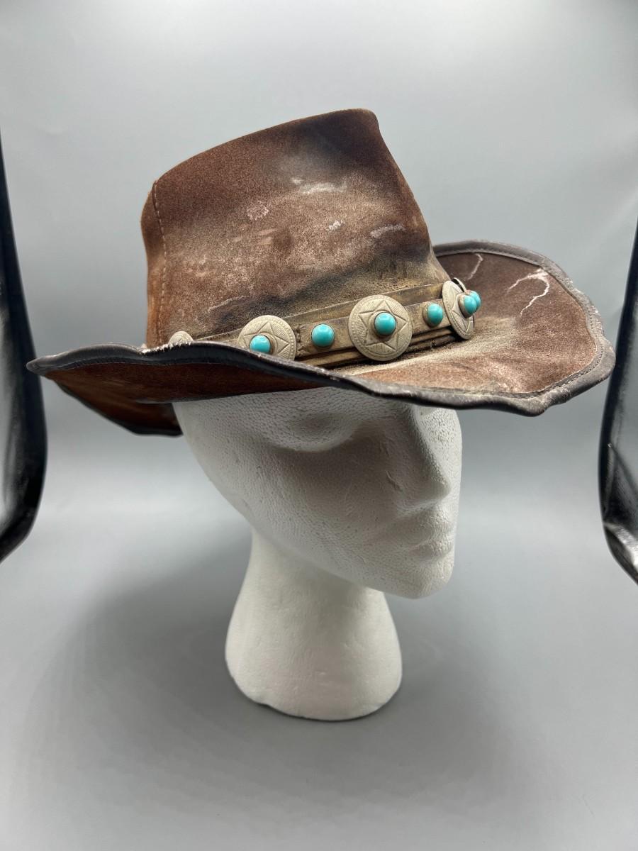 Vintage Winfield Cover Co. San Francisco Brown Leather Cowboy Hat with Southwestern Accent