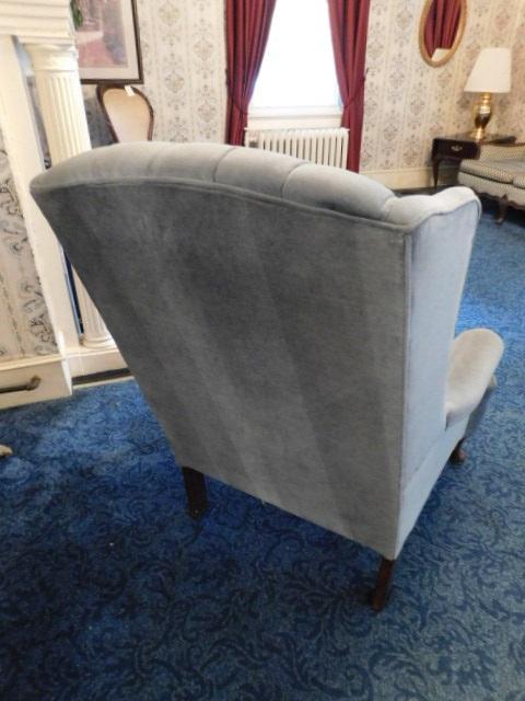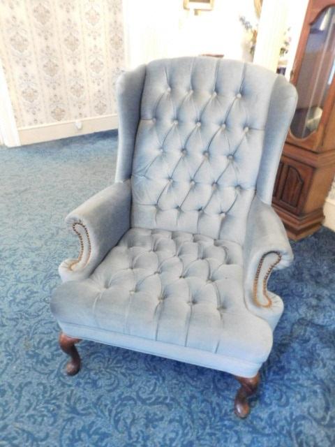 Vintage Wing Back Chair with Button Back and Seat Upholstery Front Room