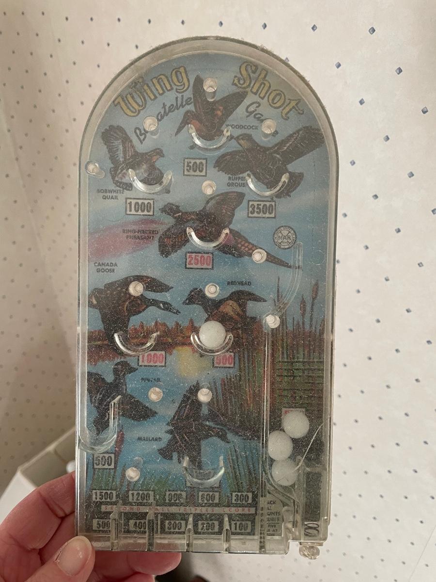 Dusty, has wear. Part of the plastic trim is missing. Cool old toy!