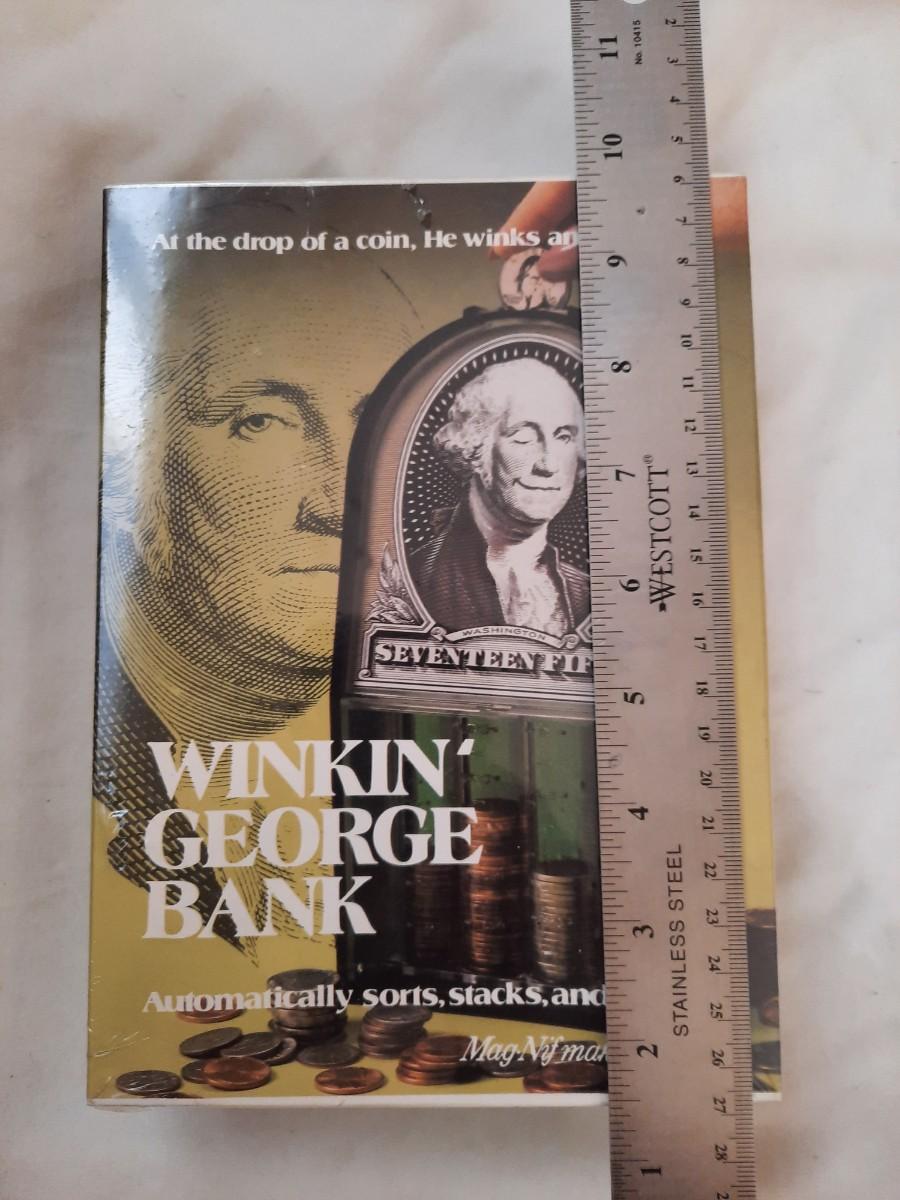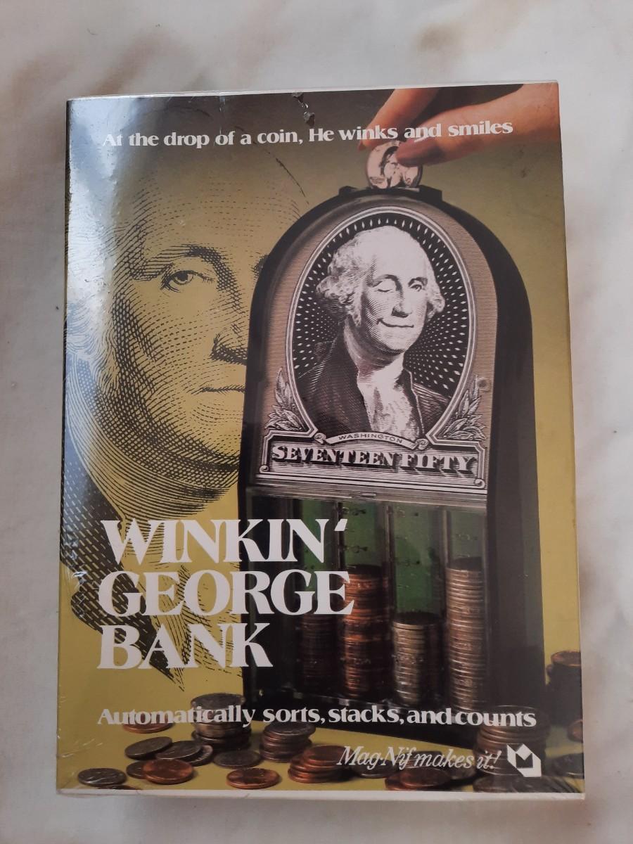 Somehow, this George Washington winks and smiles when you drop a coin in the slot. It even lights up so it likely needs batteries.