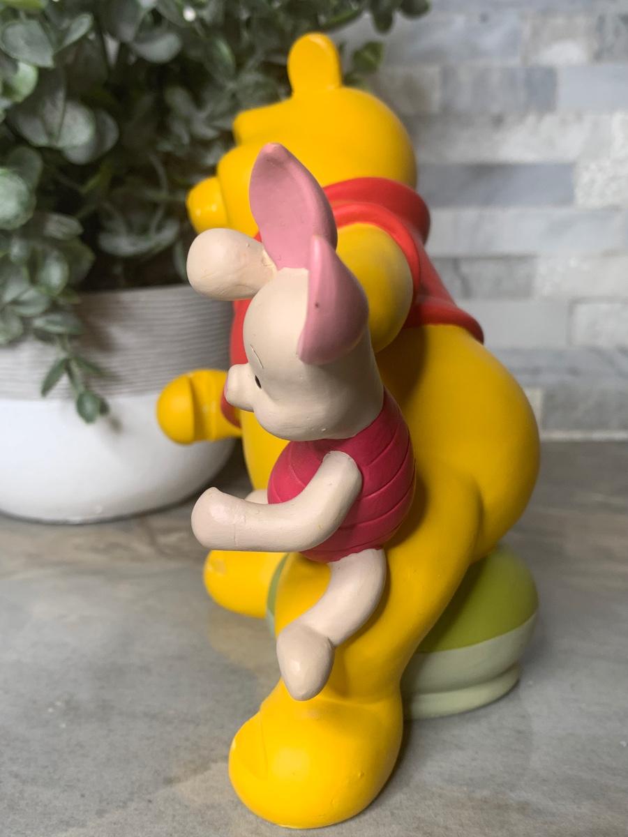 Absolutely awesome and highly collectible vintage Pooh and Piglet resin Figurine that can hold a 4 X 2 picture. The plastic frame that slips in is missing but replacement can be find one online or just use it as a figurine.