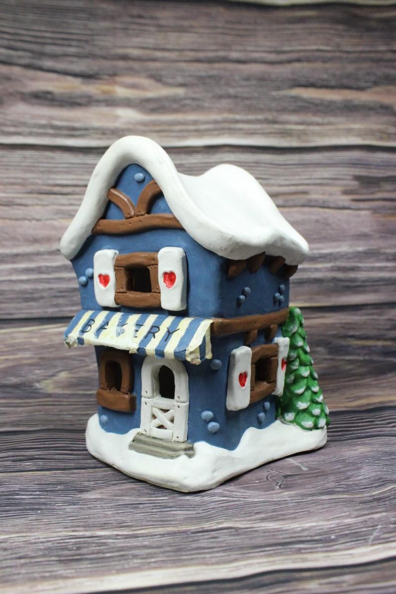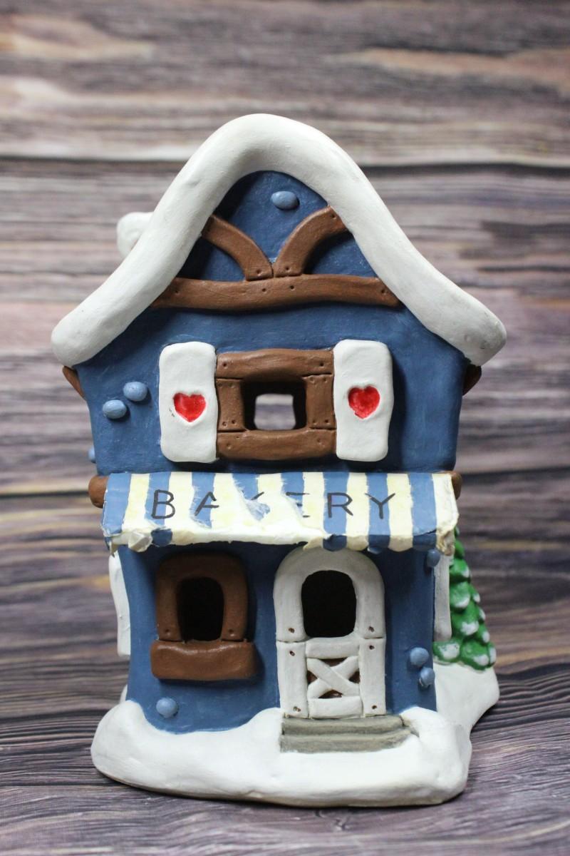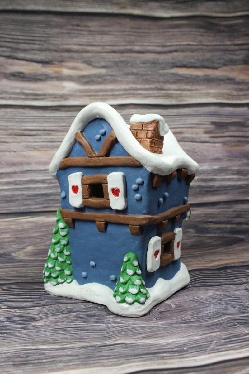 Vintage Winter Christmas Holiday Cottage Ceramic Model