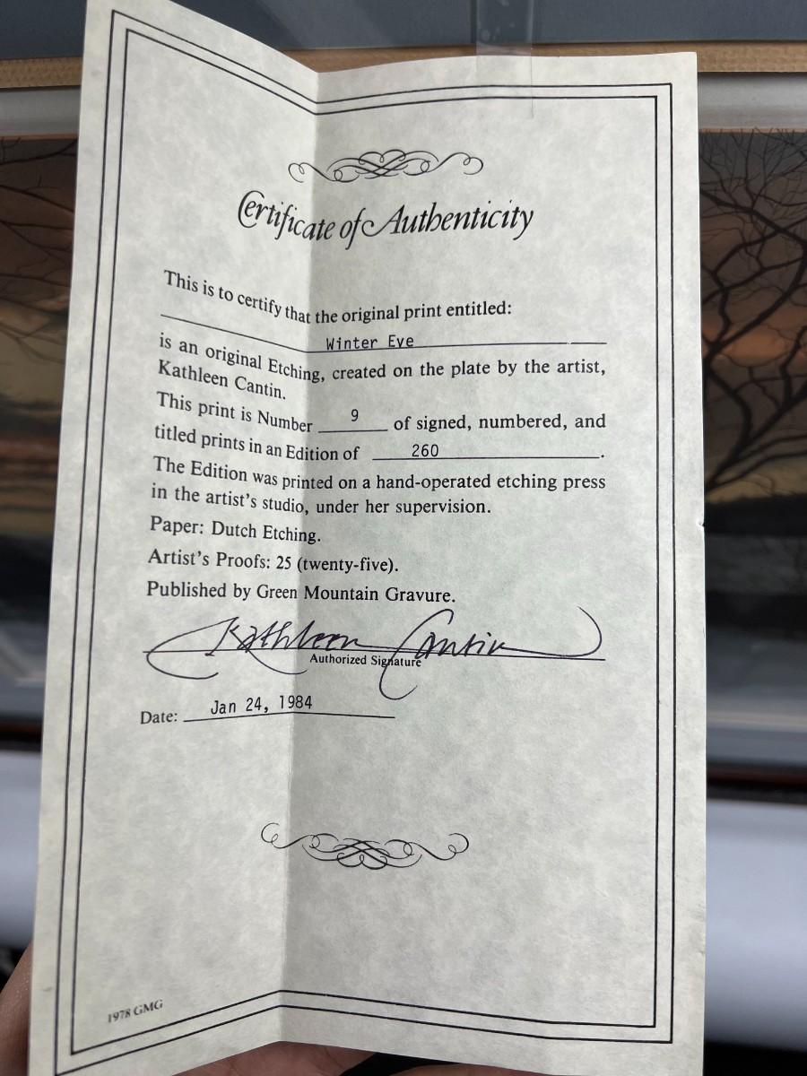 Vintage Winter Eve Dutch Etching Kathleen Cantin Signed & Numbered with COA