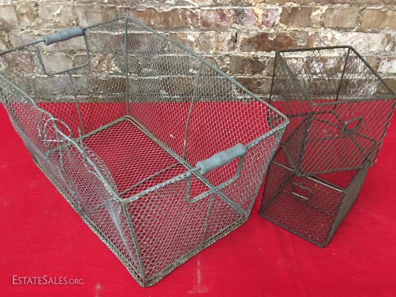 Vintage Wire Baskets Wood Handle