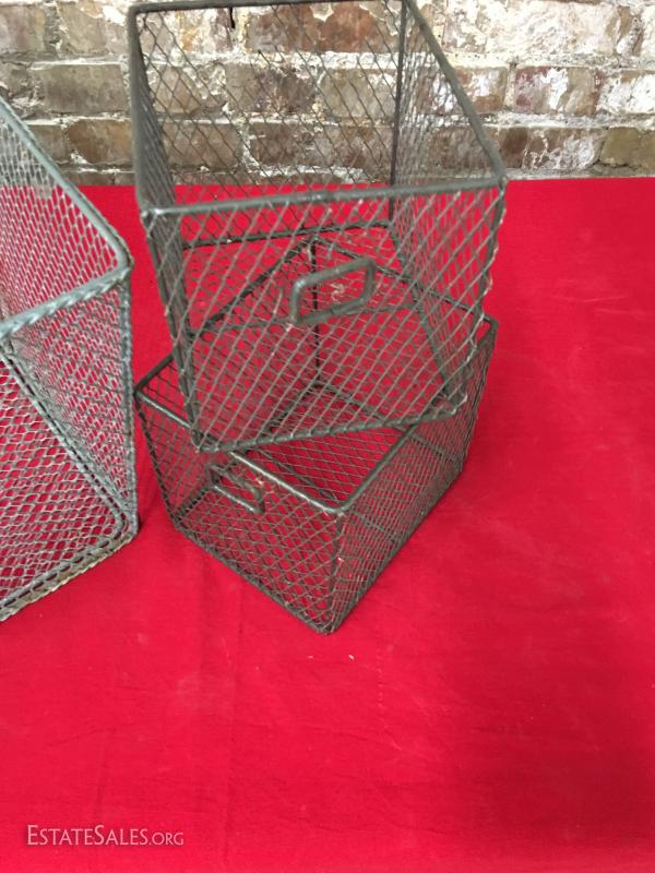 Lot of three vintage wire baskets.