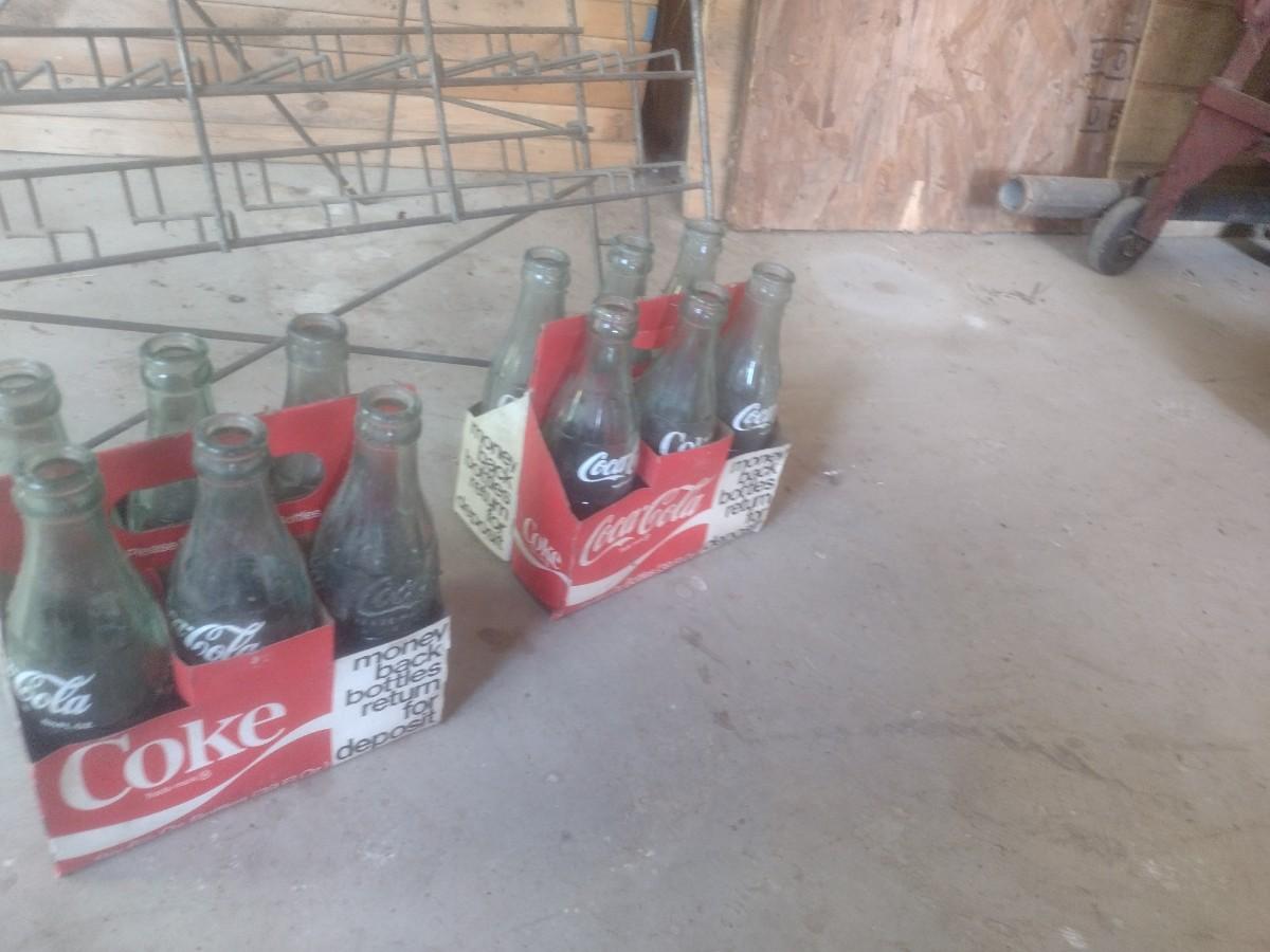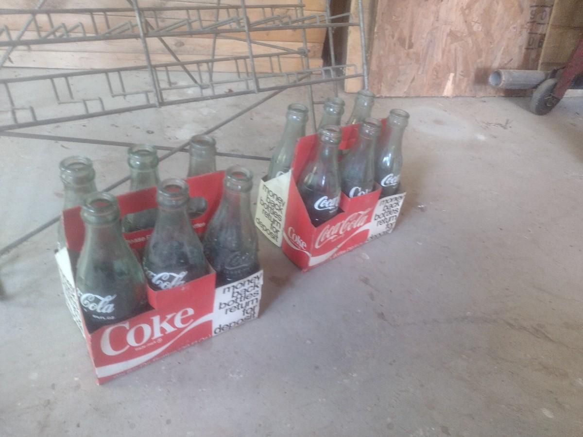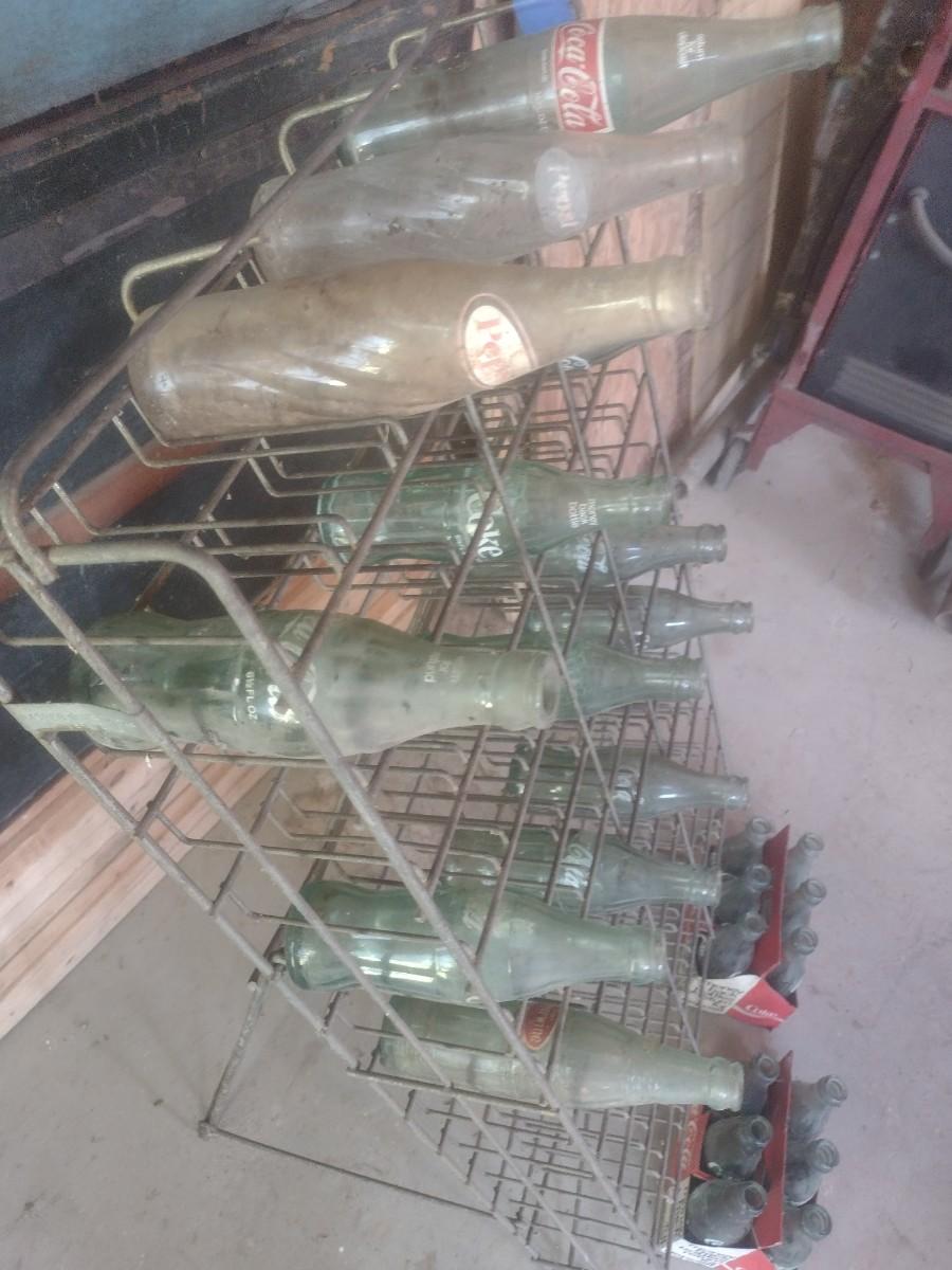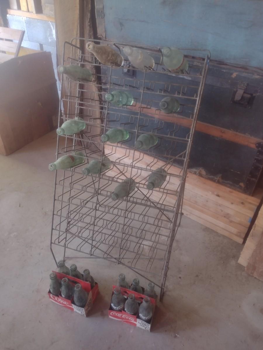 Vintage Wire Frame Soda Bottle Display Rack with Mixed Brand Bottles