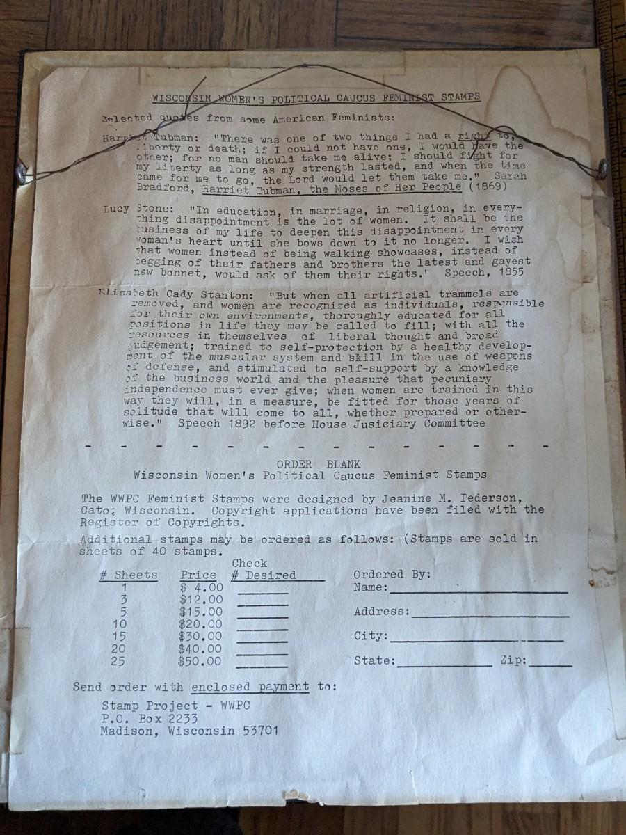 Vintage Wisconsin Women's Political Caucus Feminist Stamps, Incl Margaret Fuller