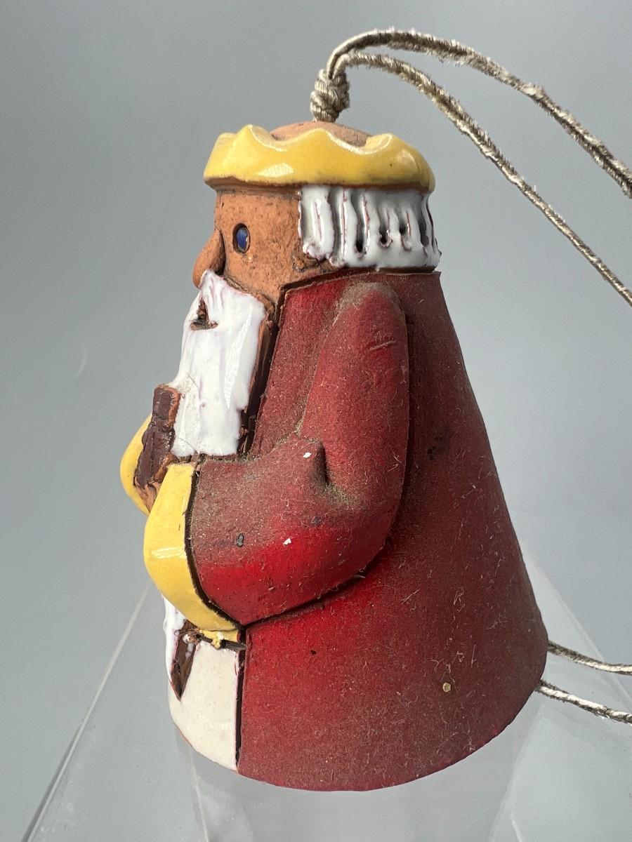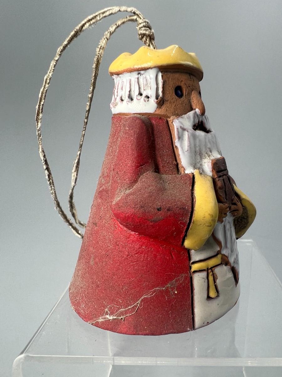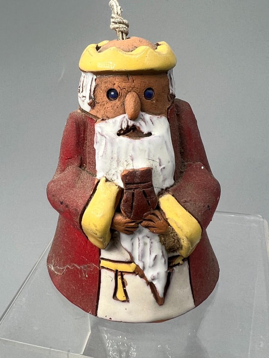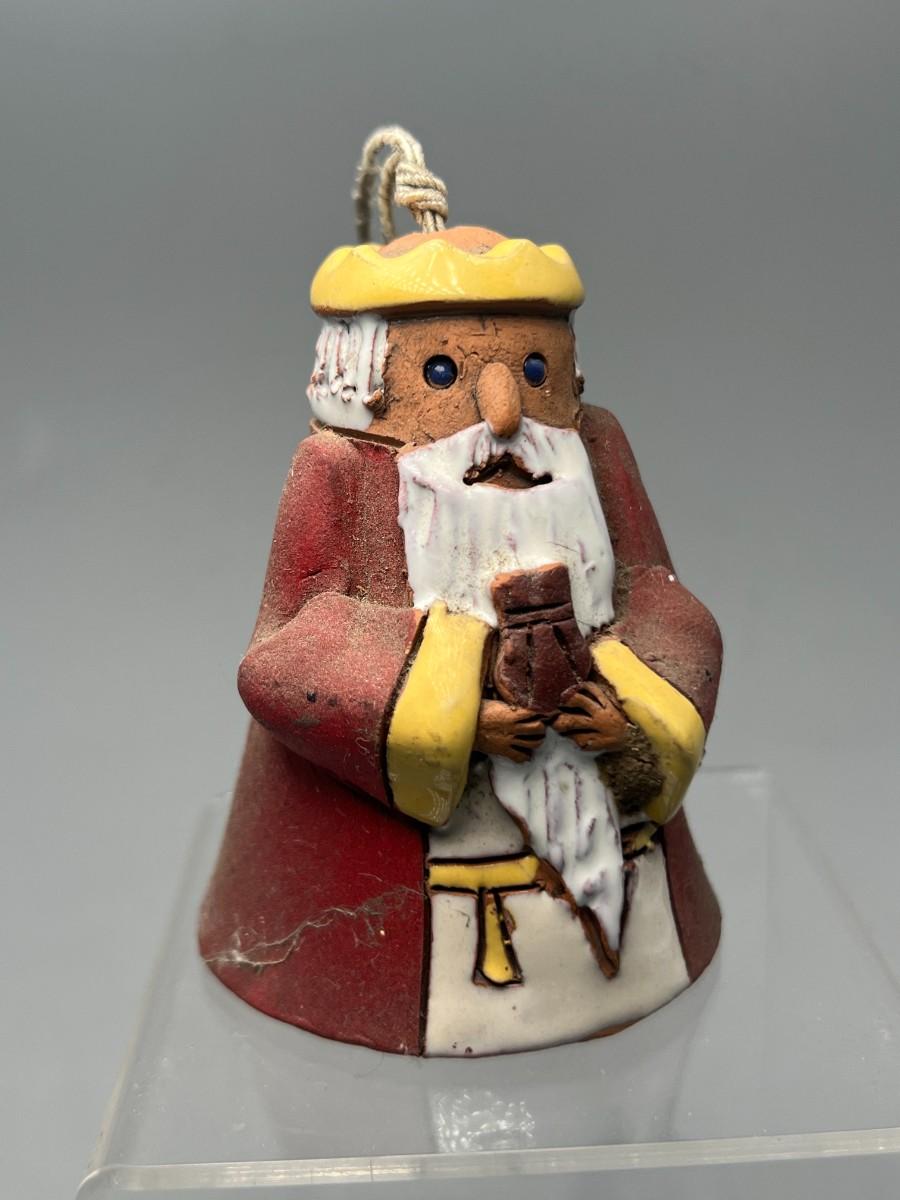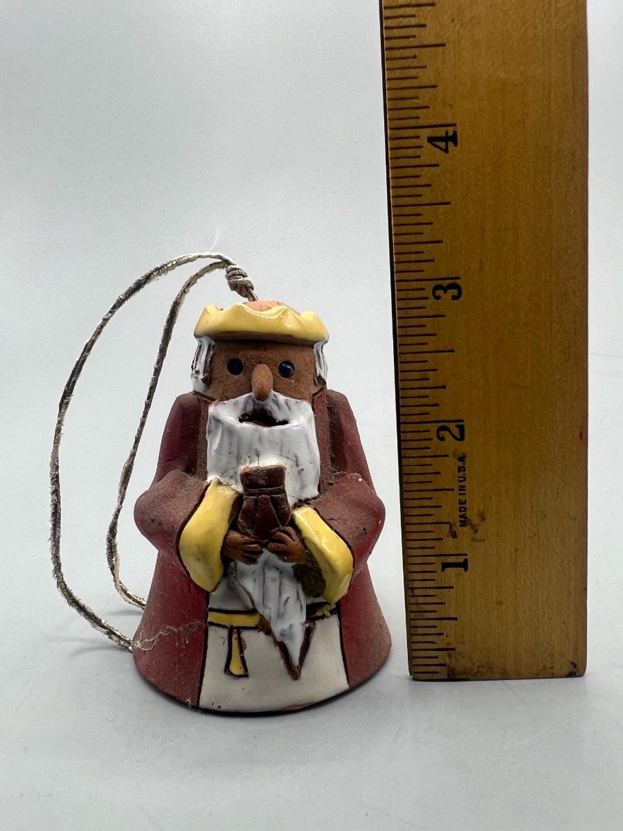 Vintage Wiseman Religious Christmas Holiday Clay Pottery Hanging Decor Bell