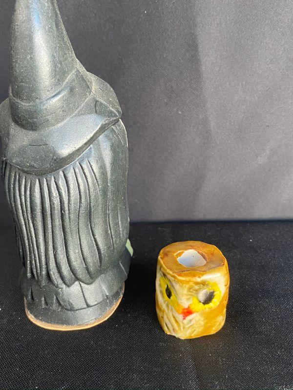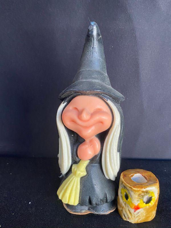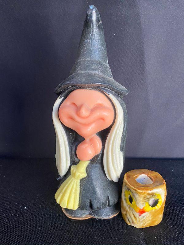 Cute little witch is actually a vintage Wizard air freshener. She does not have a scent anymore. With her is a little craft project owl. unsure when he was made or what he was used for. Neither have damage.